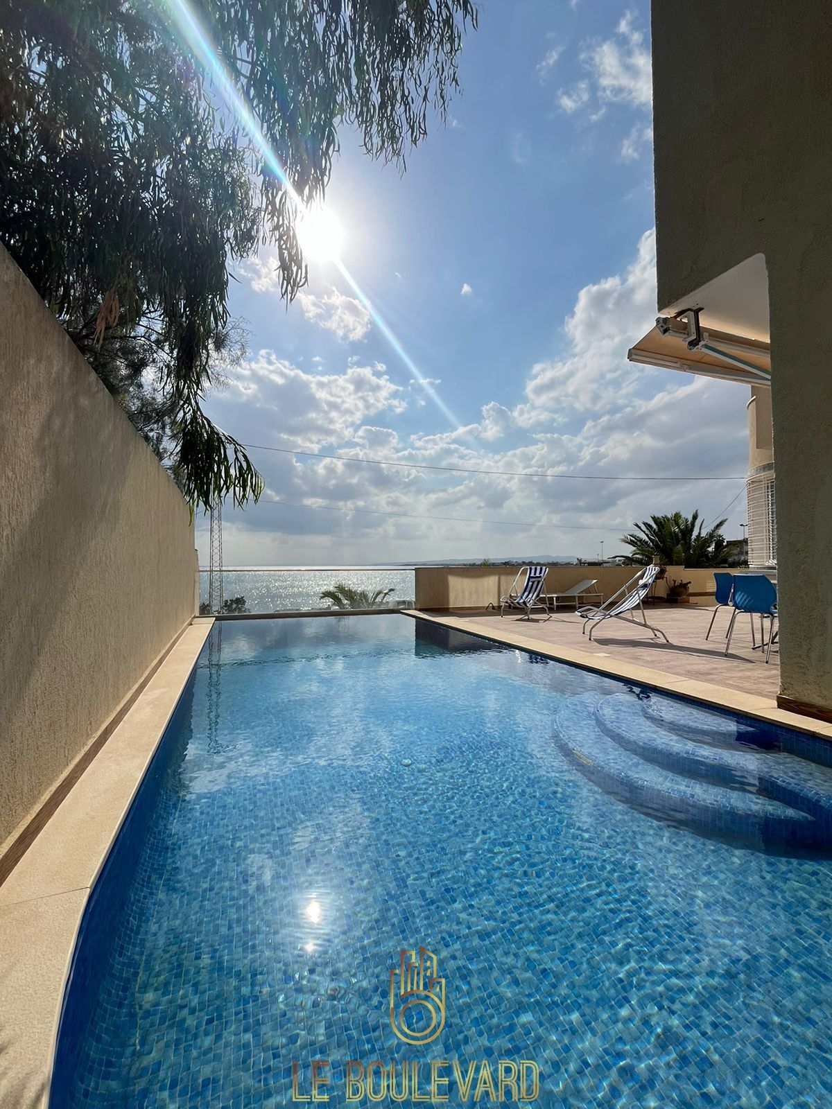 Villa S+4 avec piscine pied dans l’eau située à Benikhiar, Nabeul