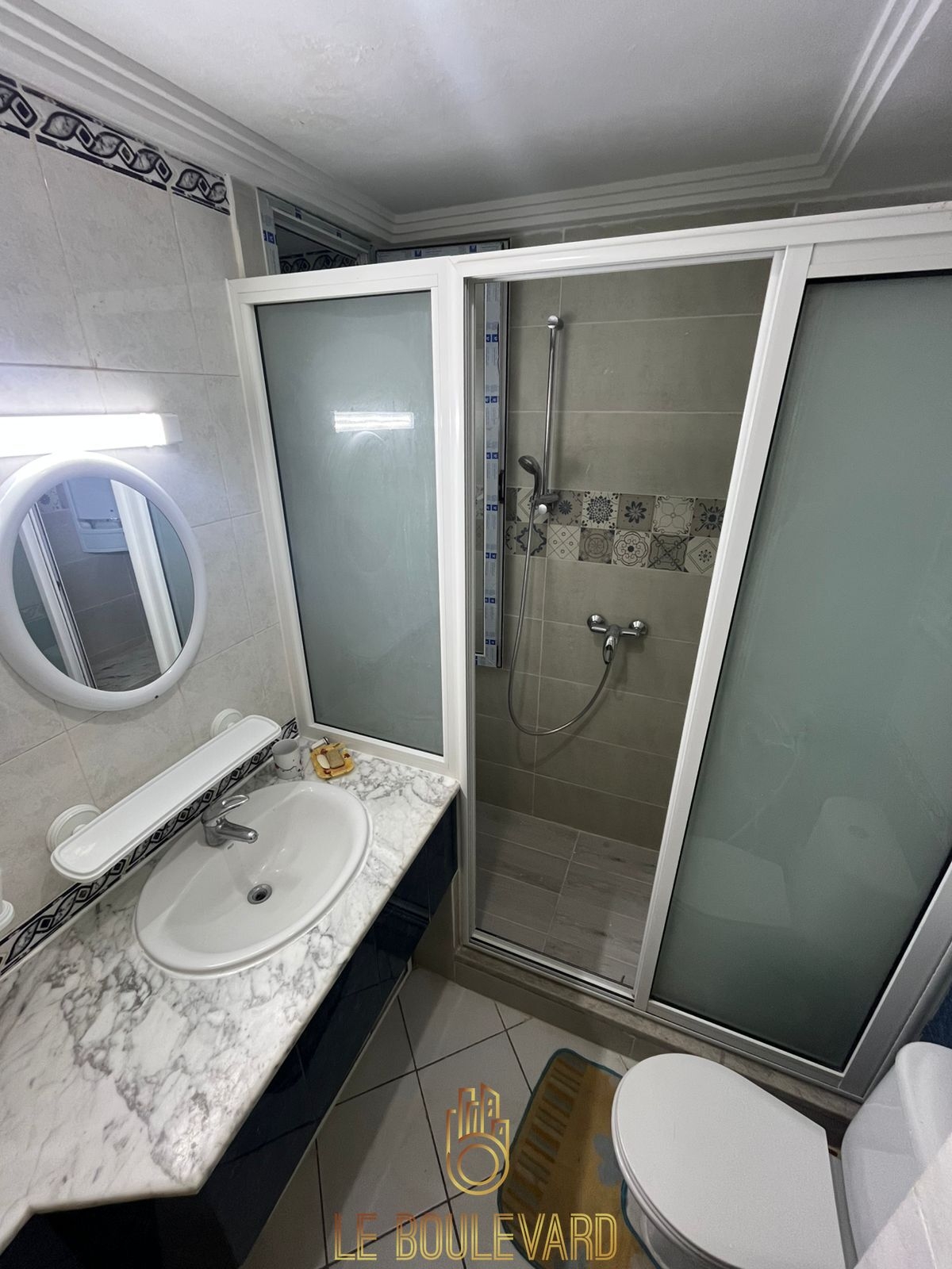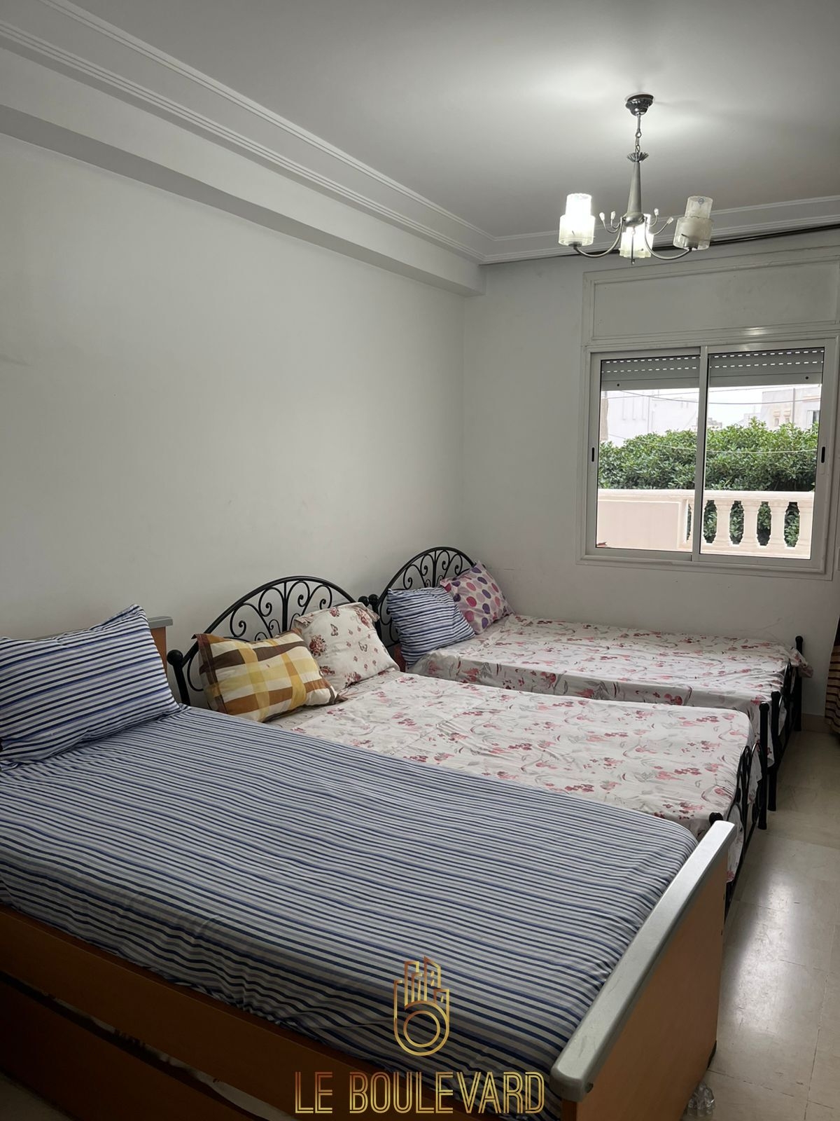 Un appartement S+2 situé dans une résidence pied dans l’eau, gardée par des agents de sécurité et équipée de caméras de surveillance à Hammamet.