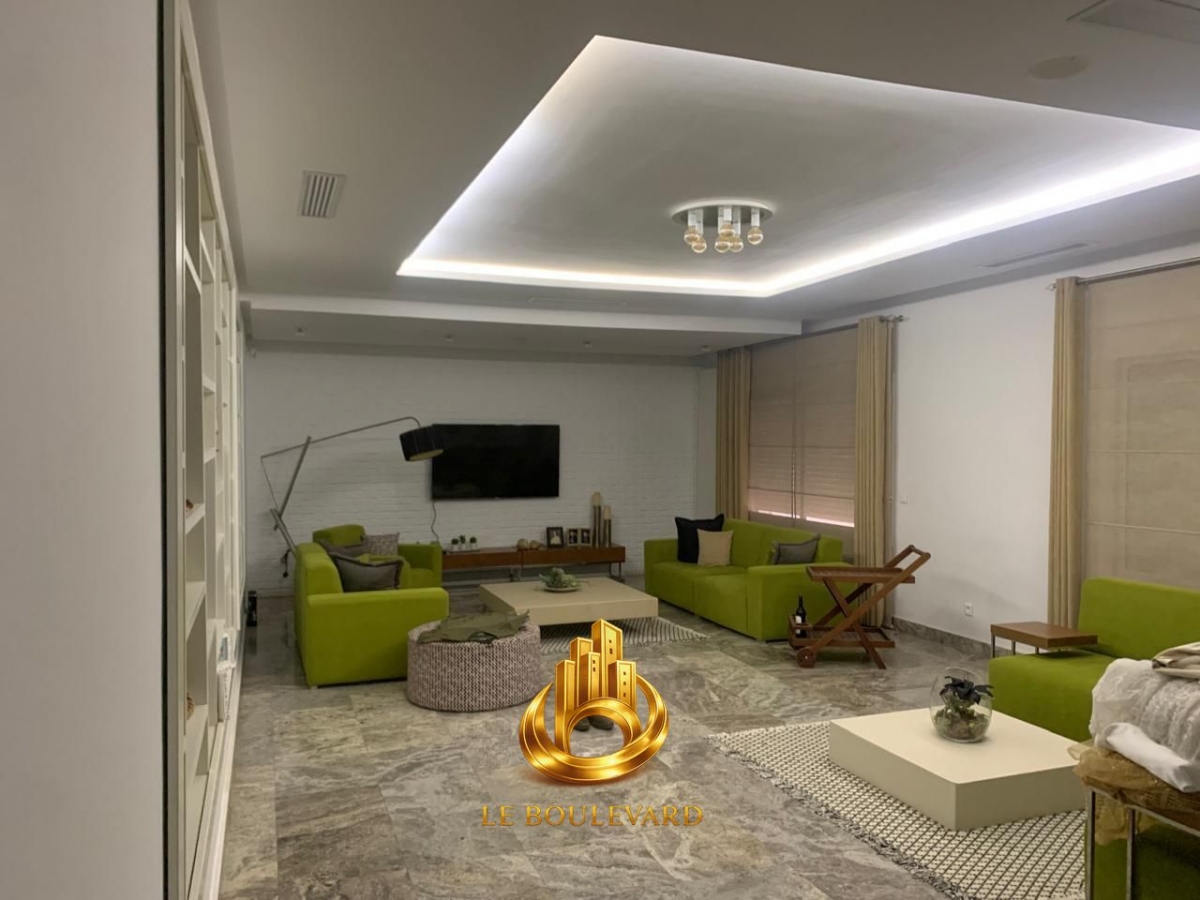 Une villa haut standing composée de 3 salons et 5 chambres, avec jardin, située à Sidi Mahersi 3, Nabeul.