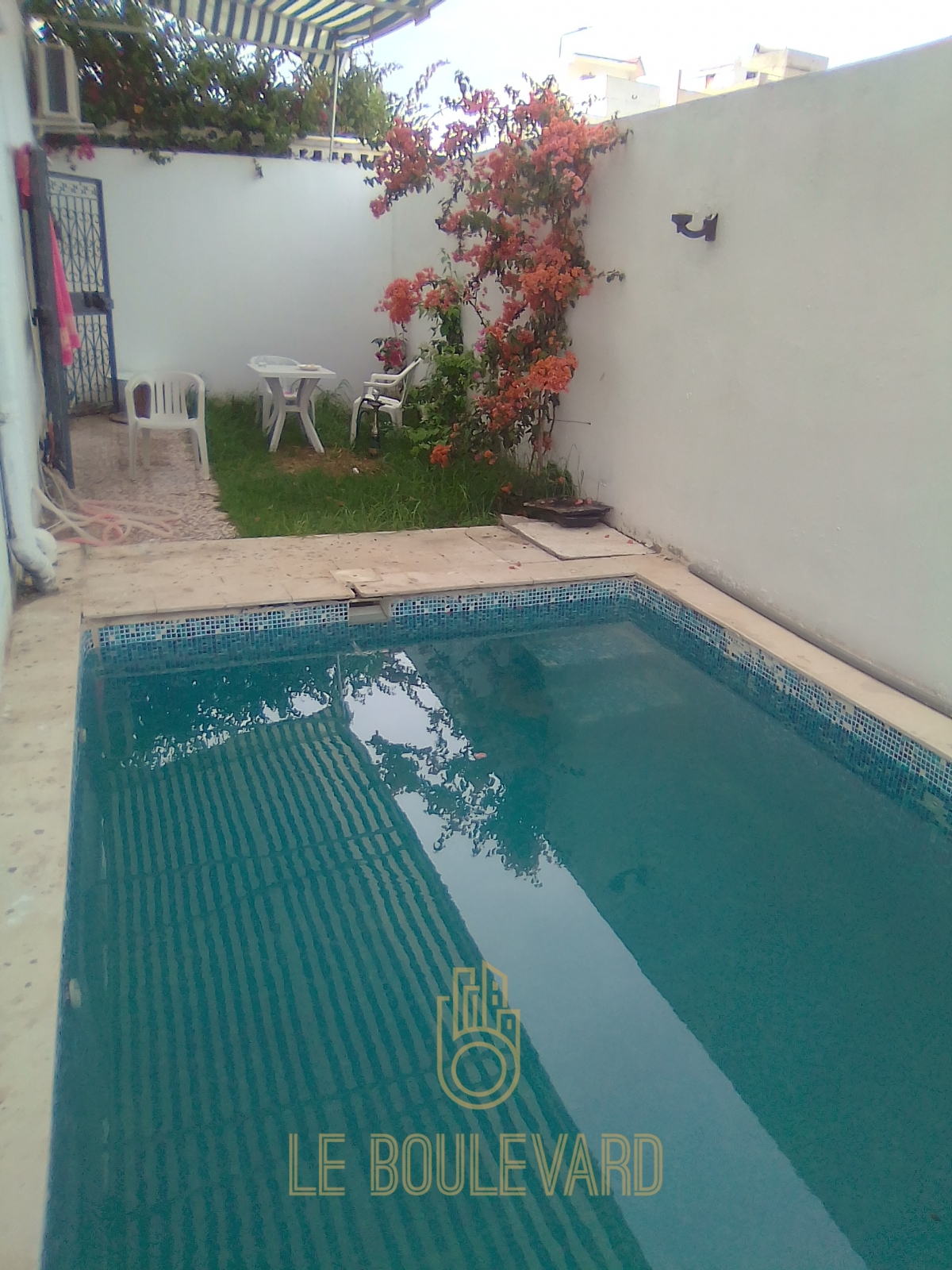 Une villa sur 3 niveaux indépendant, rez-de-chaussée, 1ér et 2éme étage avec petit jardin gazonné et piscine située à Barraket sahel, Hammamet près de kiosque Ola