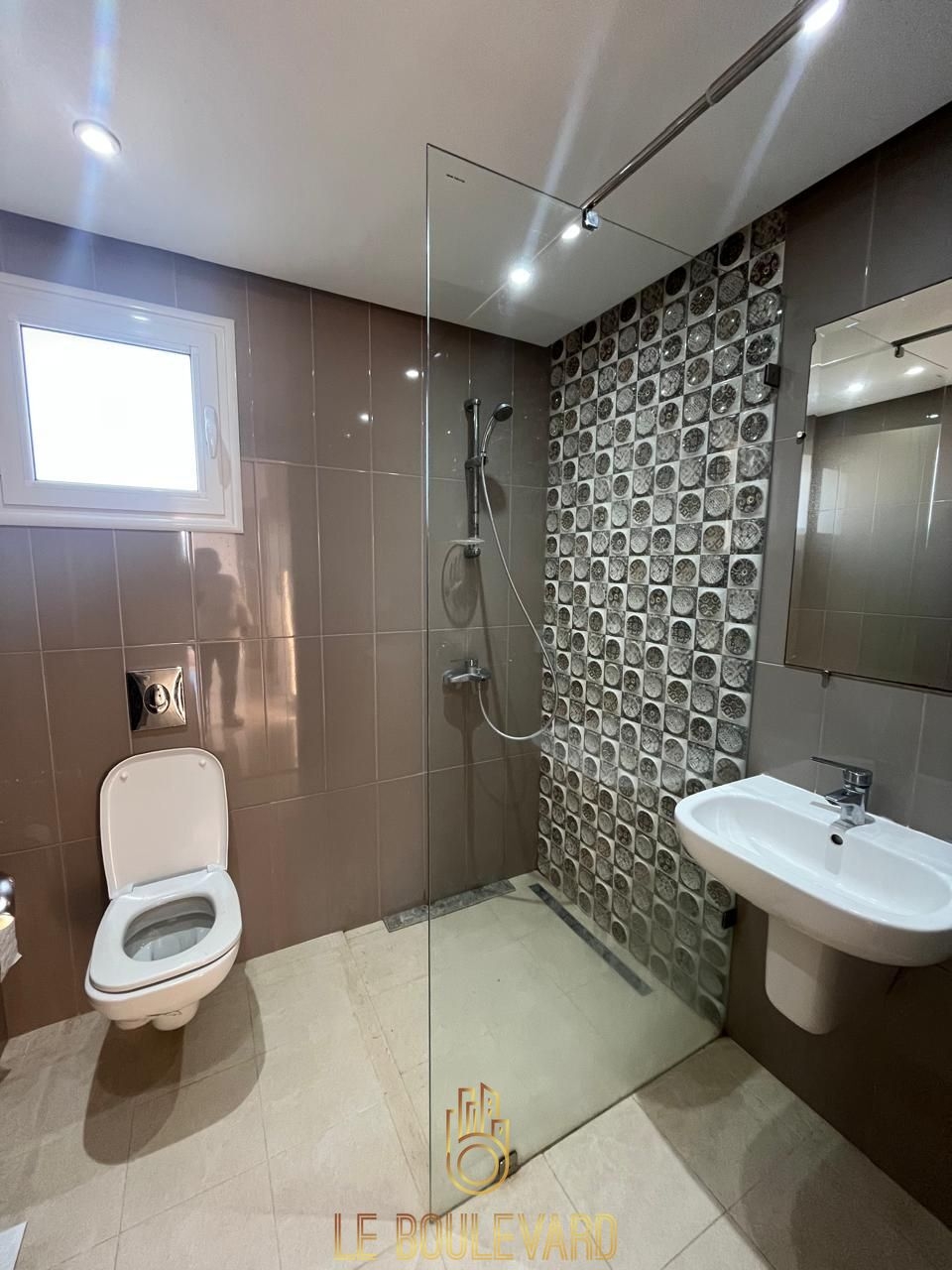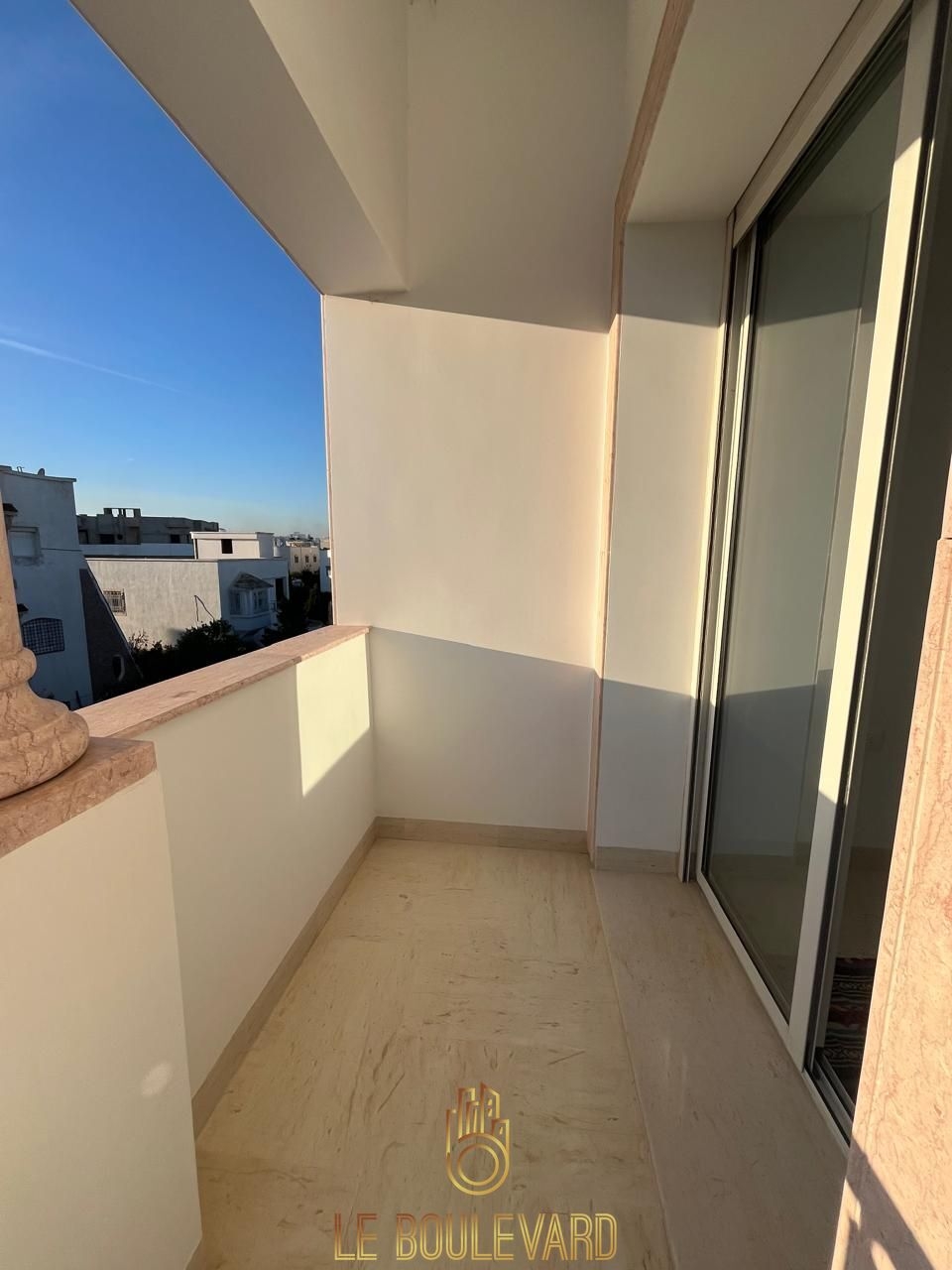 Il se compose d'un spécieux salon ayant un balcon vue mer, salle à manger, une cuisine bien équipée (plaque, hotte, réfrigérateur….) avec séchoir, 3 chambres à coucher avec dressing et balcon et salle d'eau et salle d'eau à l'extérieur.