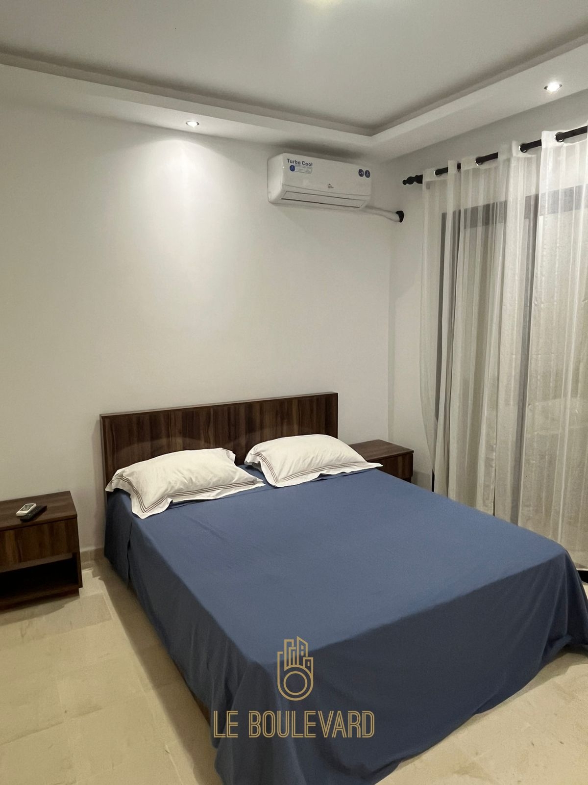 Au 2éme étage on a une spacieuse chambre avec lit double, dressing, télévision et une grande terrasse vue sur mer