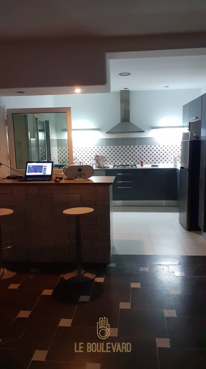 Au RDC on a un salon lumineux, une cuisine bien équipée (Plaque, hotte, micro-onde, machine à laver, réfrigérateur …), séjour et salle d’eau