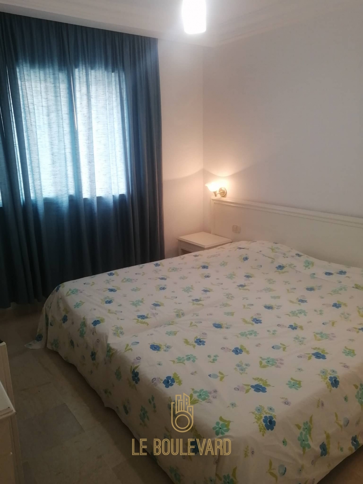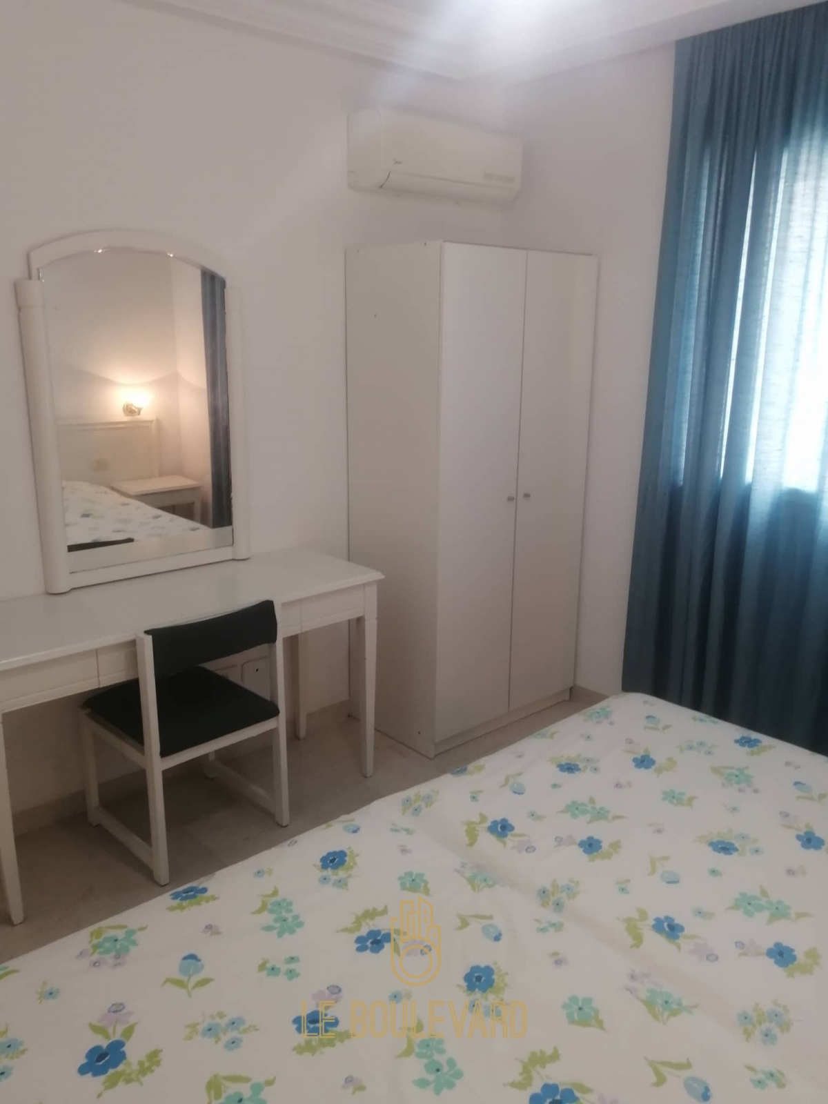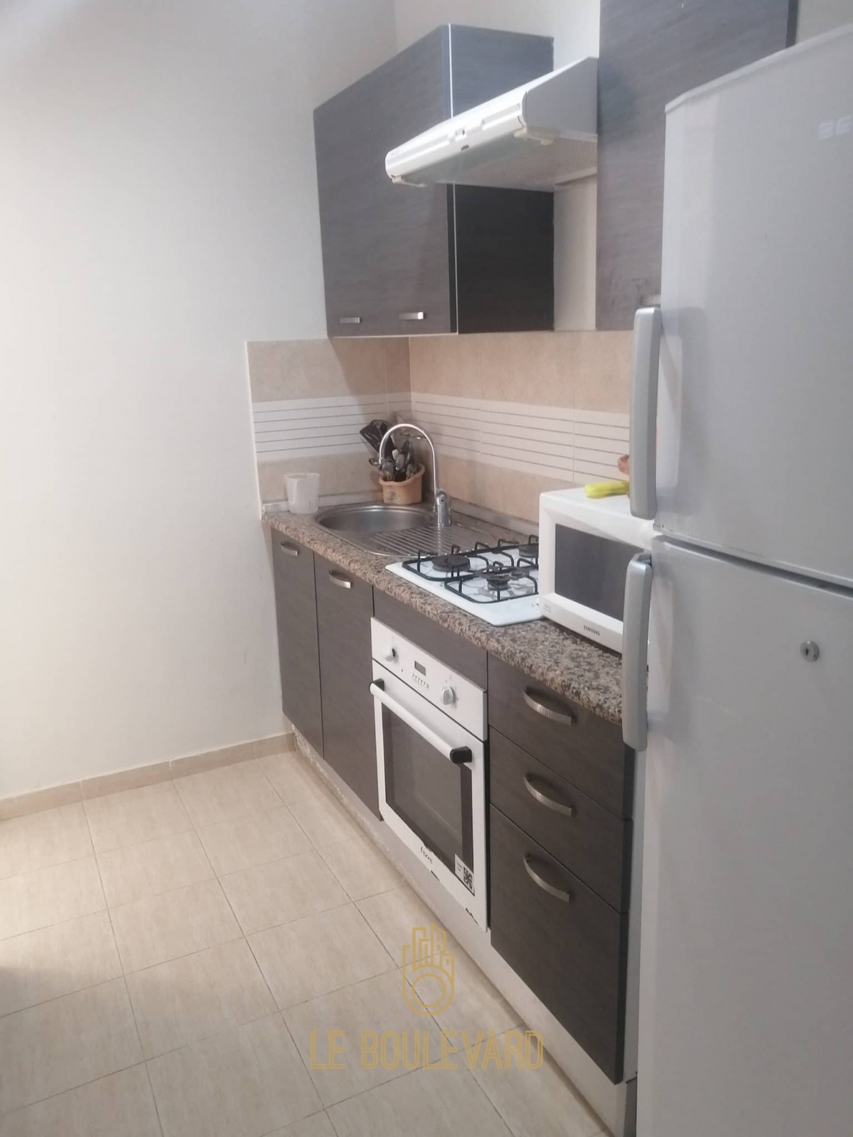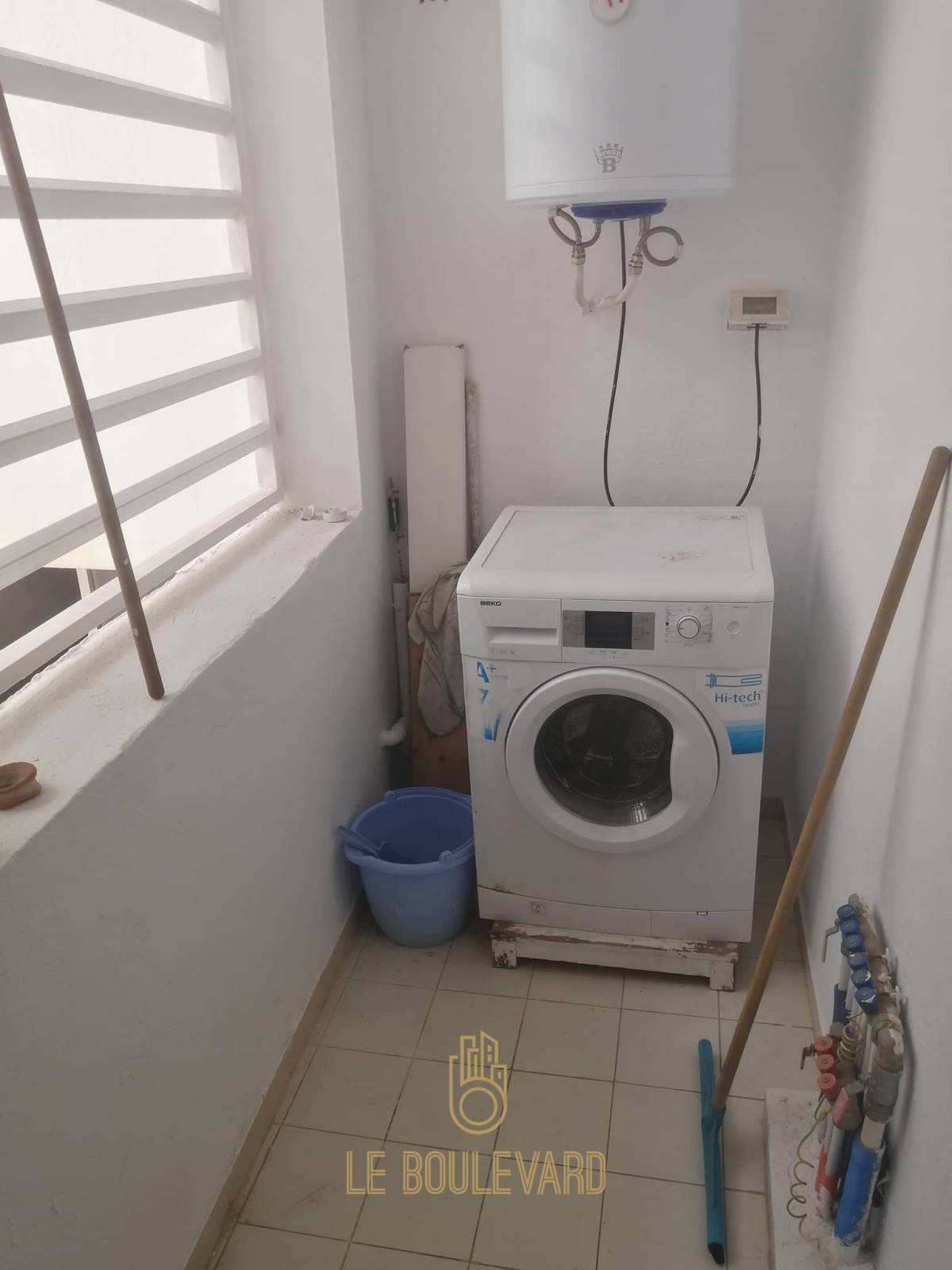 L'entrée donne sur un salon avec balcon, une cuisine bien équipée (hotte, plaques, four, frigidaire, et machine à laver…) avec séchoir, une chambre à coucher avec dressing et salle d’eau