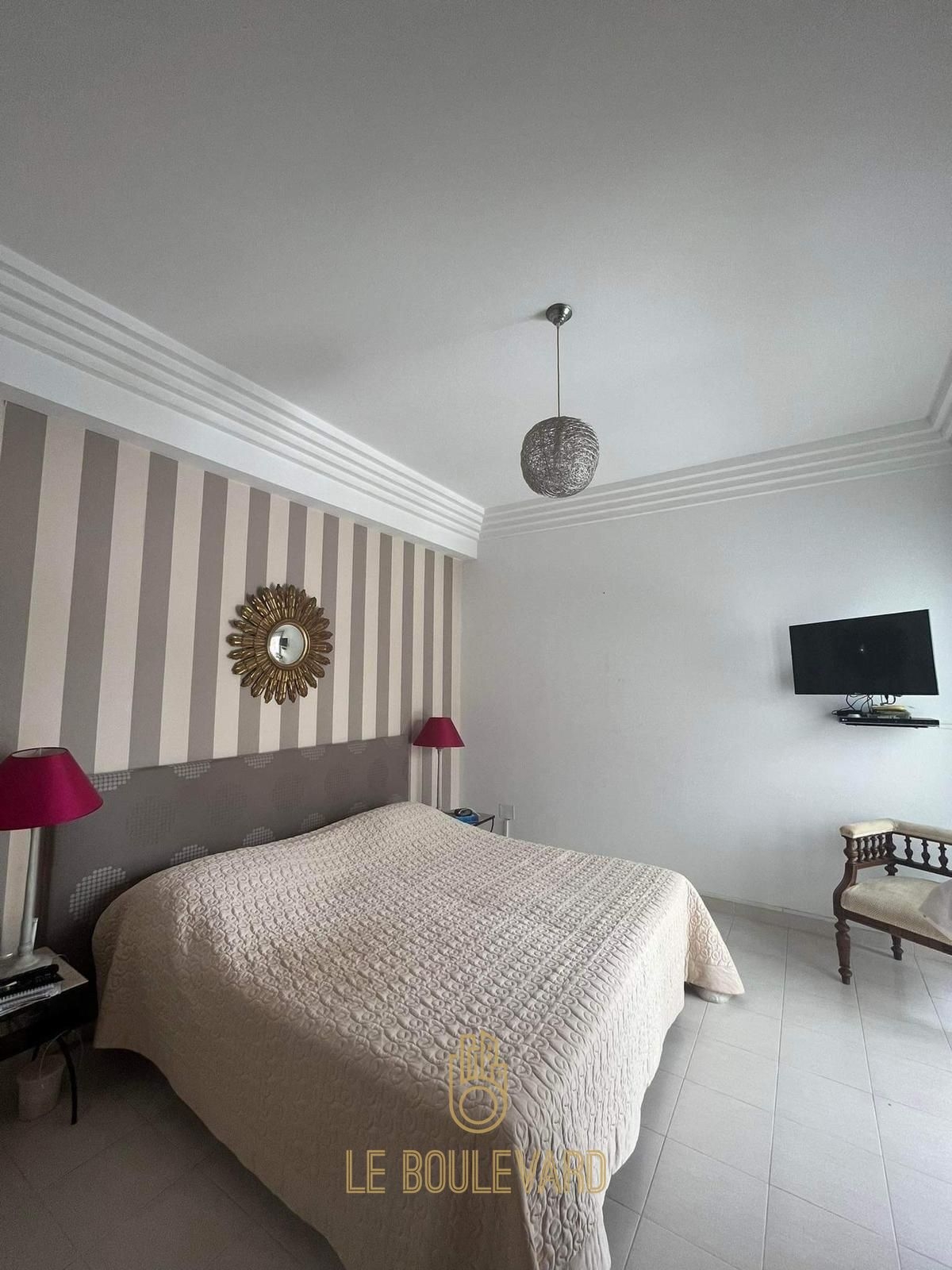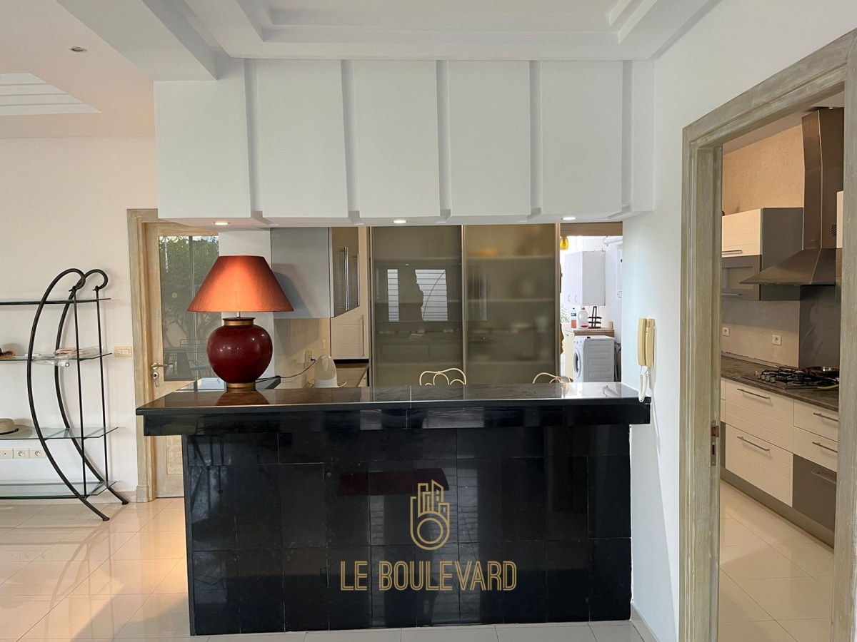 Il se compose d’un spacieux salon ouvrant sur le jardin, salle à manger, placard, 3 chambres à coucher avec dressing, 2 salle d’eau, une cuisine bien équipée (plaque, hotte, machine à laver, machine vaisselle, four…) avec séchoir, une grande terrasse et un jardin.