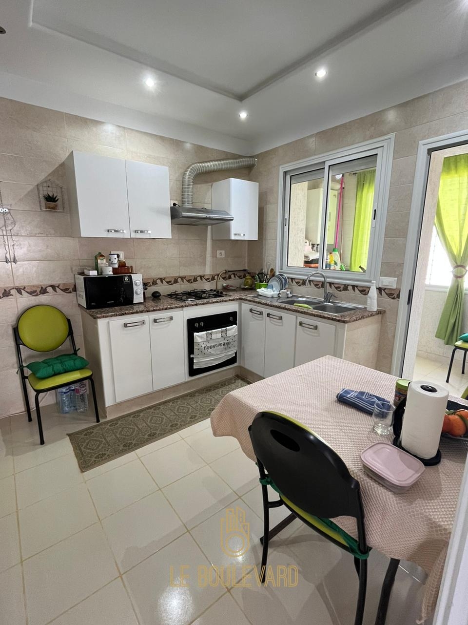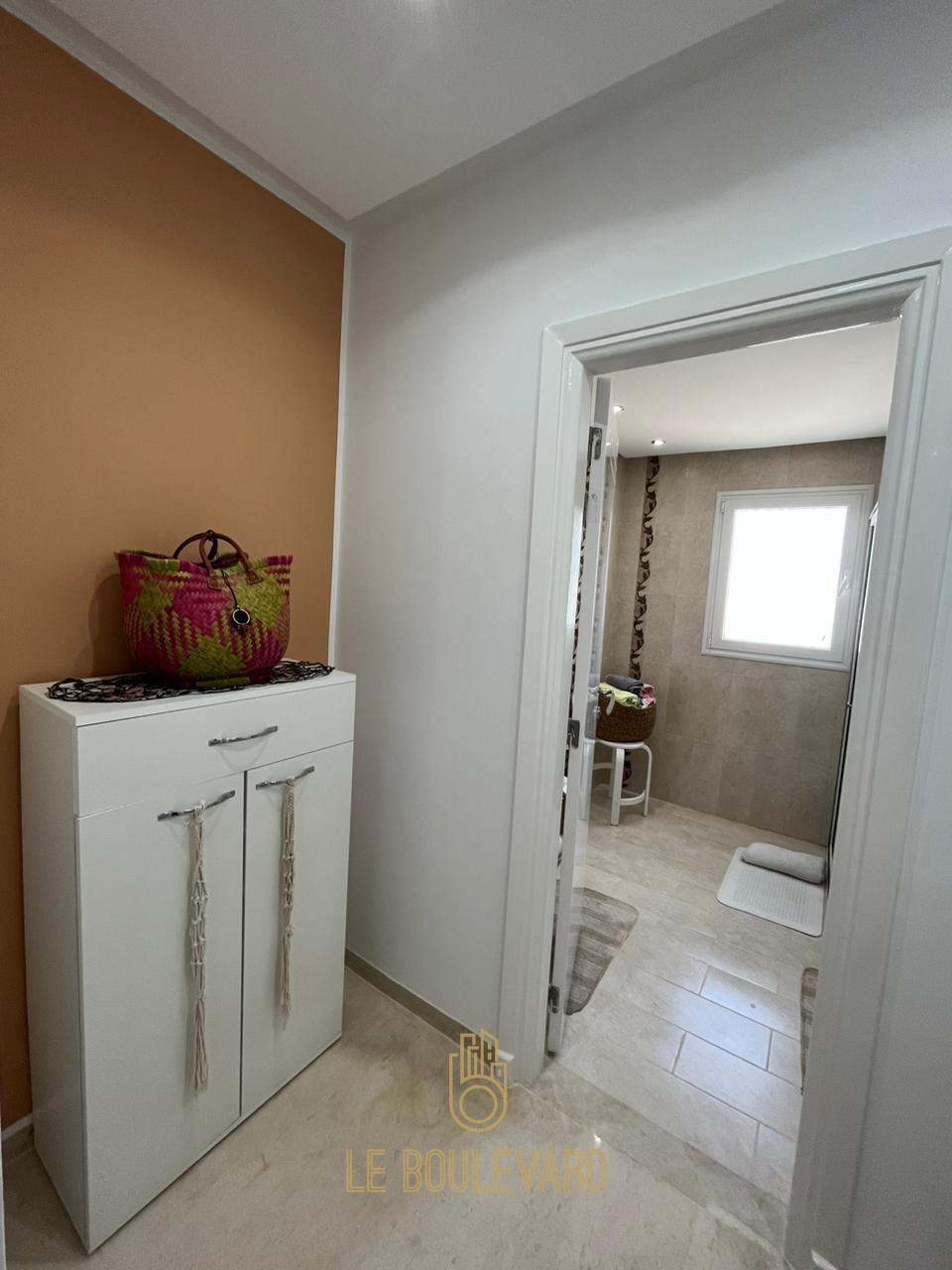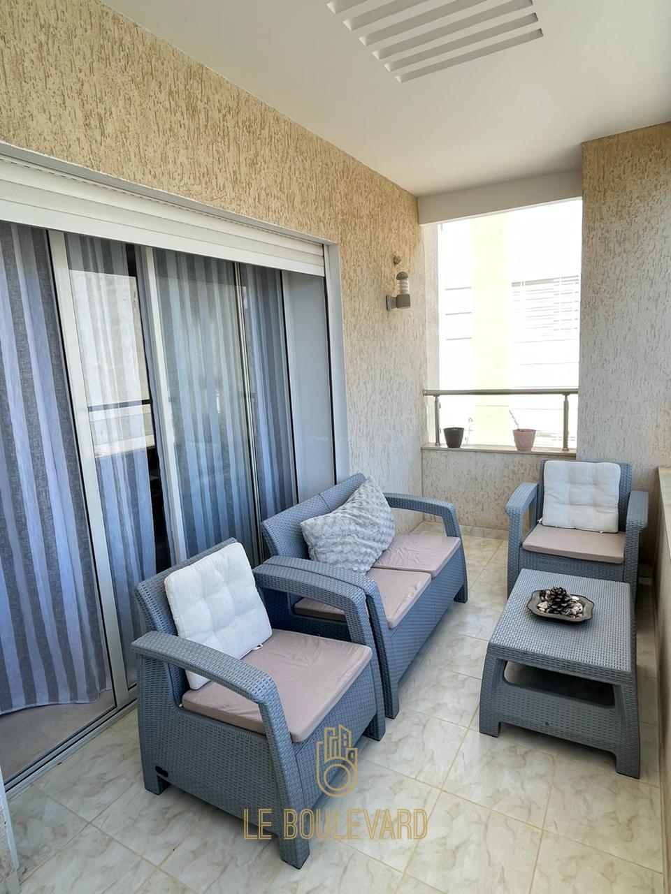 Il se compose d'un salon avec balcon vue mer, 2 chambres à coucher, salle d'eau et une cuisine bien équipée (Plaque, hotte, four…) ayant un séchoir.