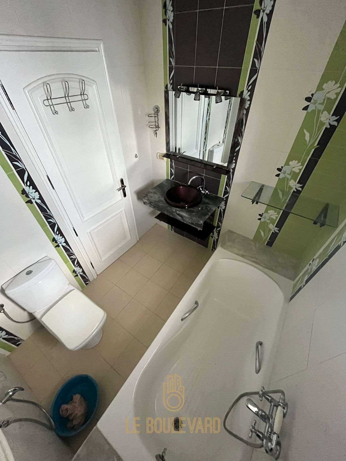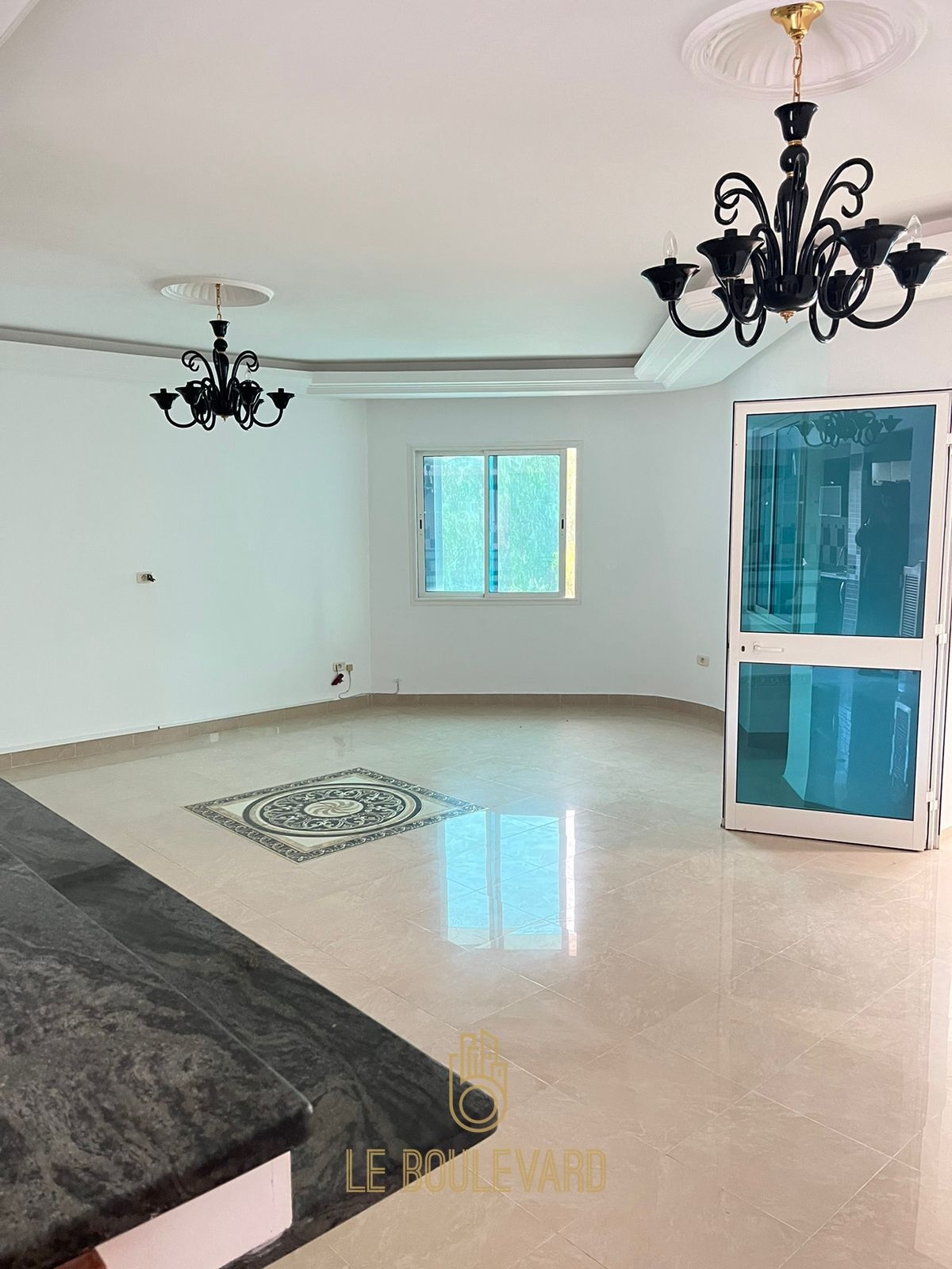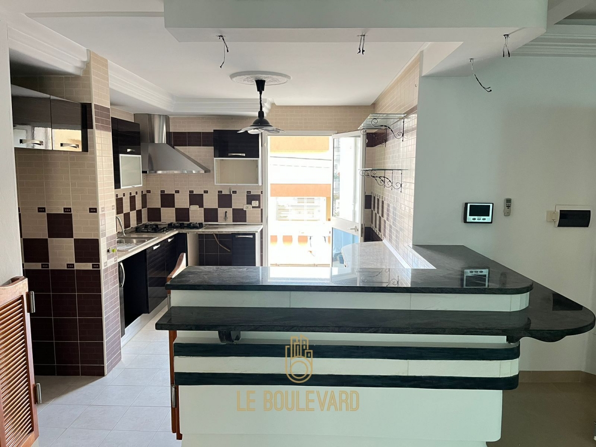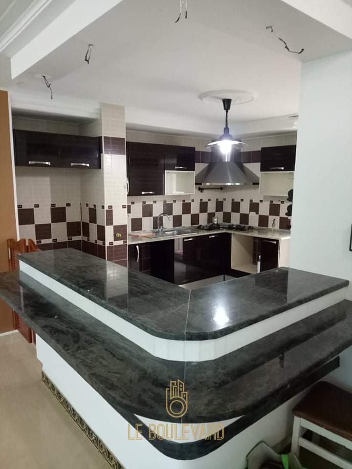 Il se compose d'un spacieux et lumineux salon avec balcon, une cuisine bien équipée (plaque, hotte…) avec séchoir, 2 chambres à coucher et salle de bain.