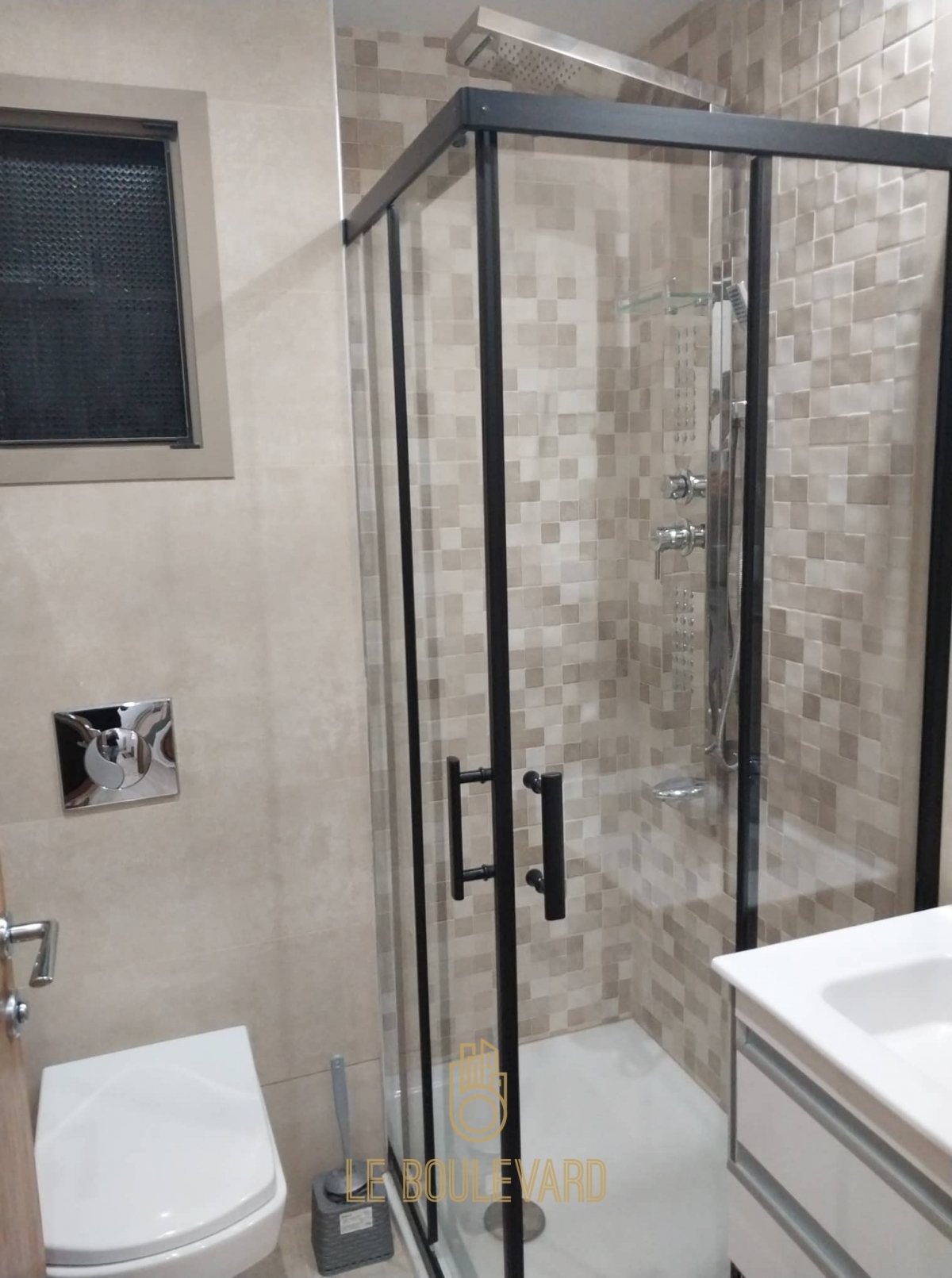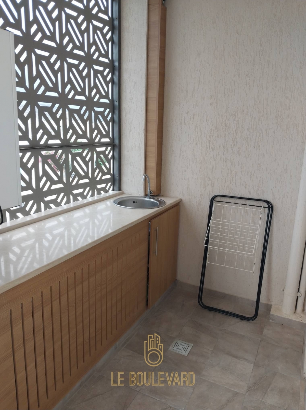 L'entrée donne sur un salon lumineux avec une terrasse vue sur mer, une cuisine bien équipée hotte, plaques, four, frigidaire, machine à laver (tous premier usage) avec séchoir, une chambre à coucher avec dressing et salle d’eau