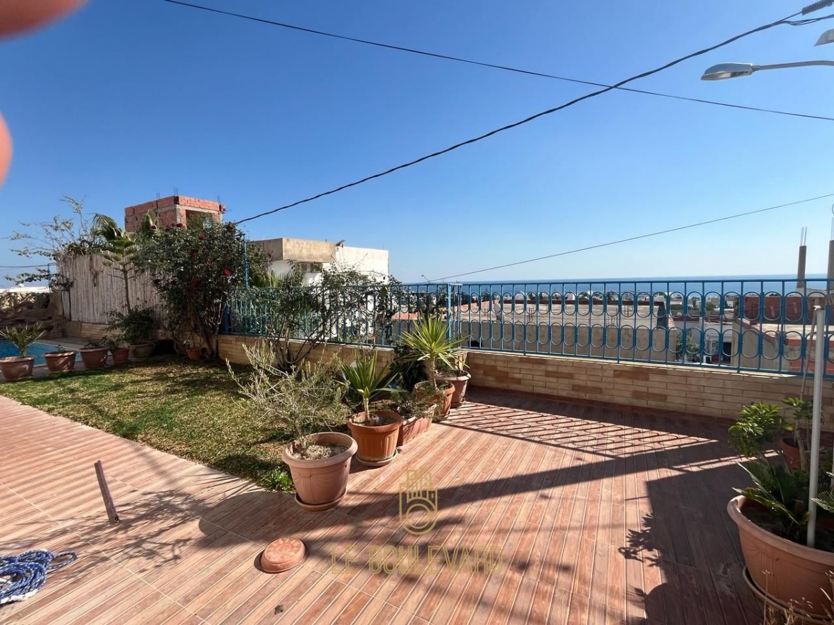 Une villa S+4 avec piscine et vue sur mer, située à Hammamet.