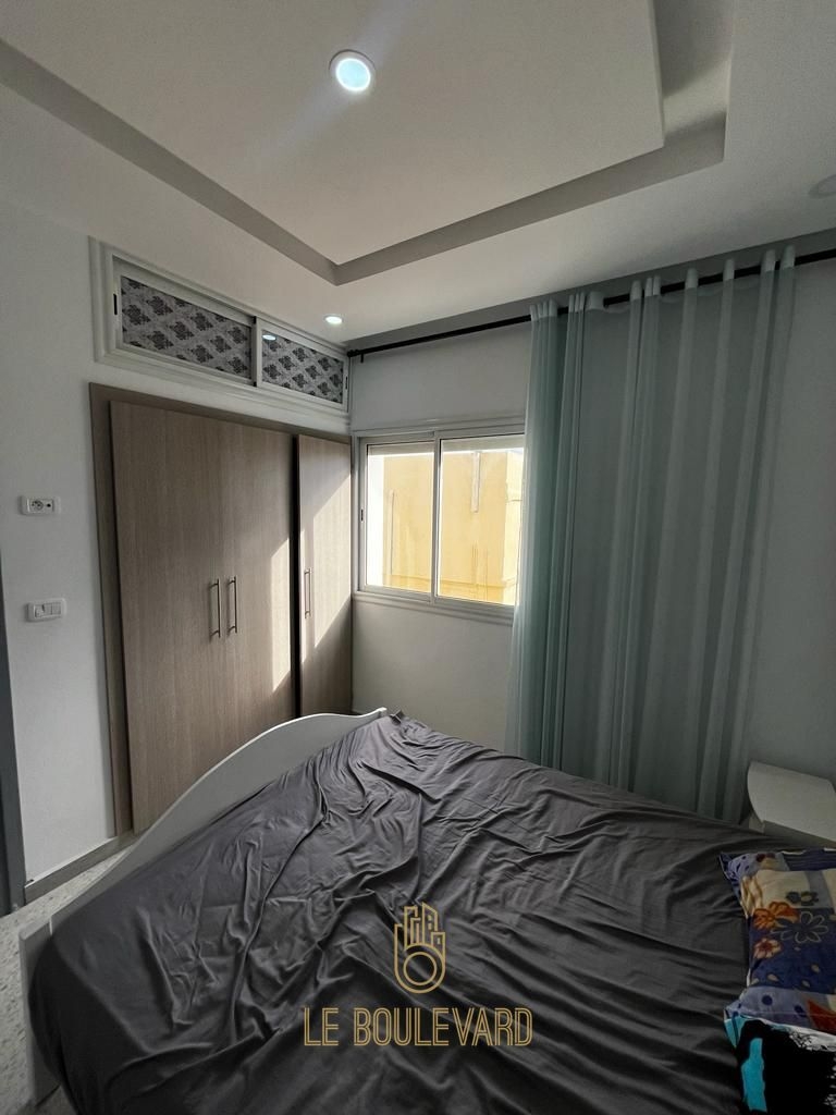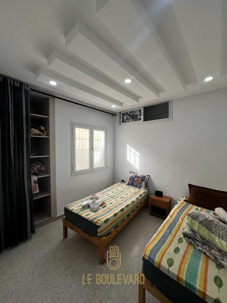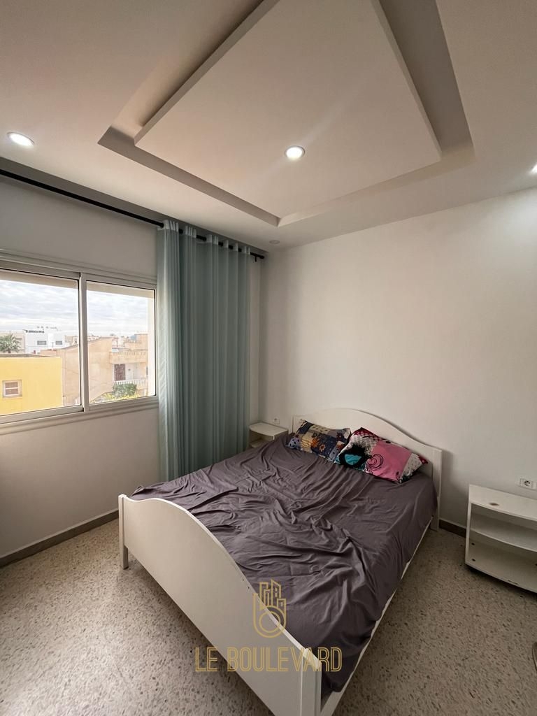 Appartement S+2 au 2ème étage, situé à Néapolis, Nabeul. Il se compose d'un salon, d'une cuisine avec séchoir, 2 chambres à coucher avec dressing, et d'une salle d’eau.