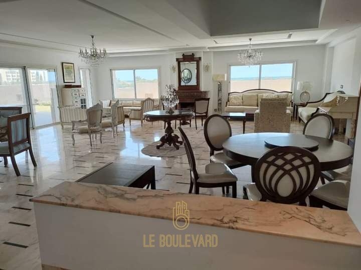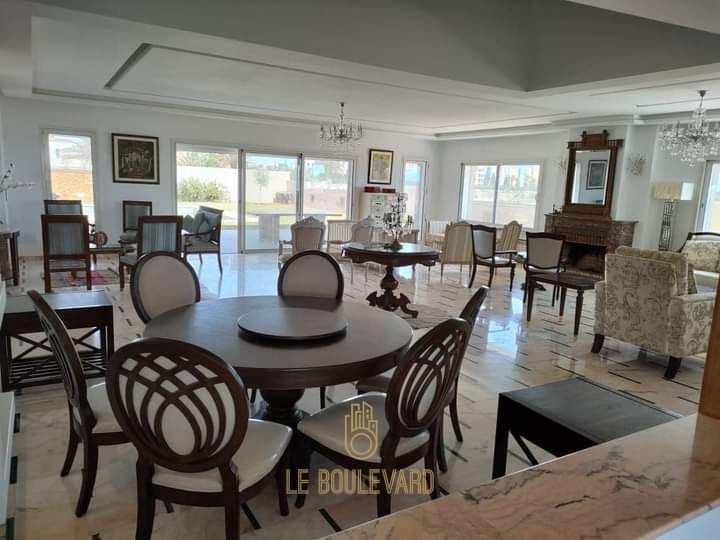 Elle se compose de 5 spacieux salons et salle à manger avec cheminée, salle d’eau invités, 6 suites royales avec les salles de bain et leurs balcons, 2 cuisine modernes et bien équipées.
