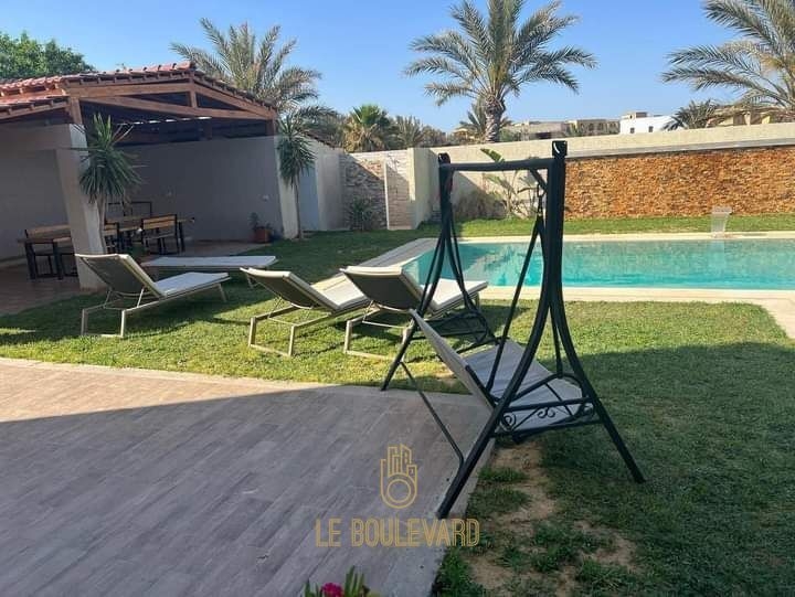 Une villa 5 S+6 Suites avec piscine et pied dans l’eau à Hammamet Sud et à proximité d’hôtel Hasdrubal.