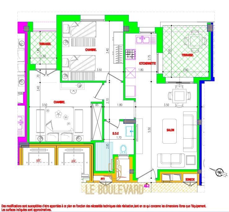 Un appartement S+2 avec terrasse, haut standing, sur plan dans une résidence bien sécurisée à AFH Mrezge, Cité El wafa, Nabeul.