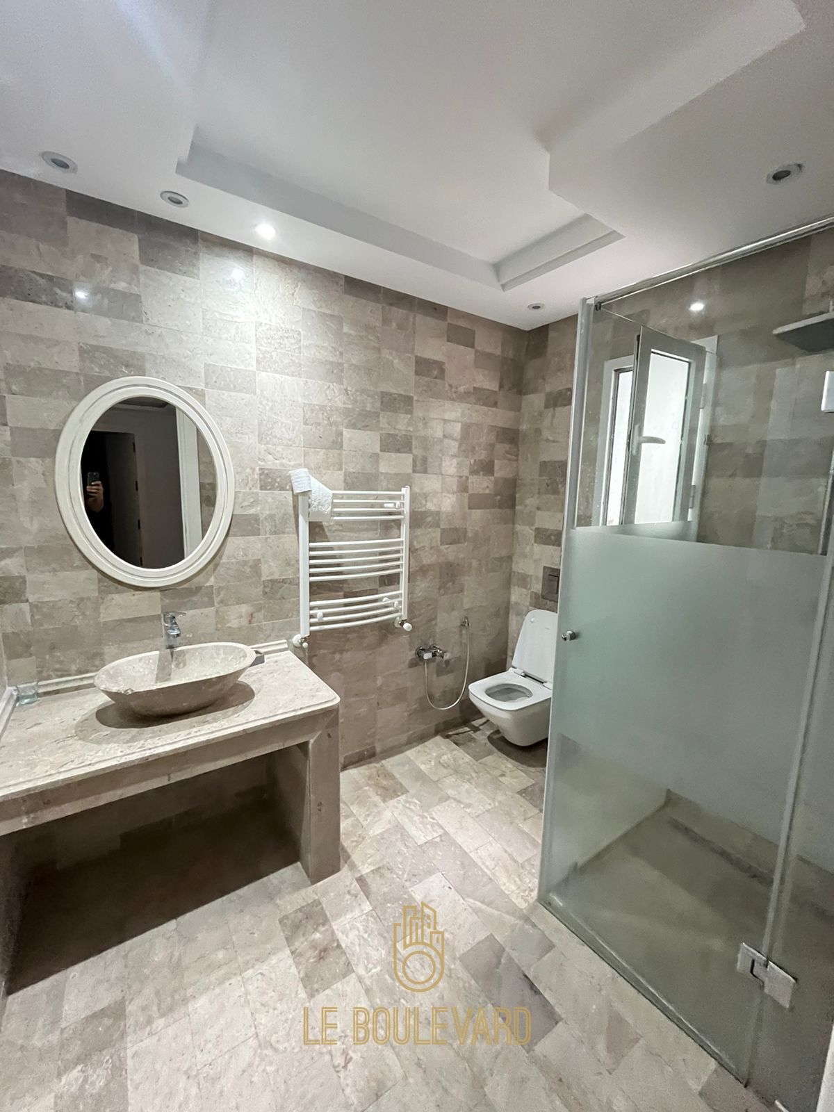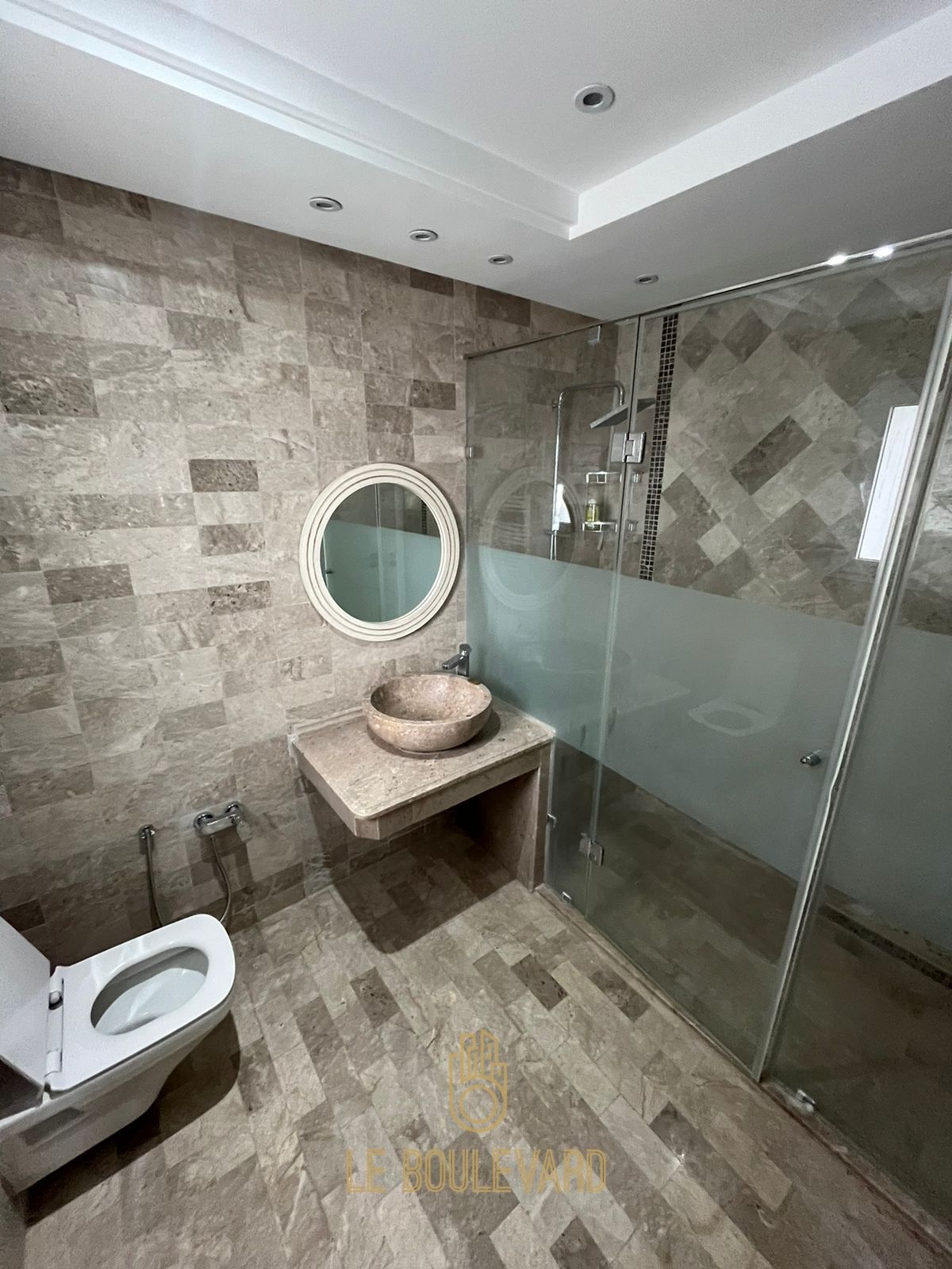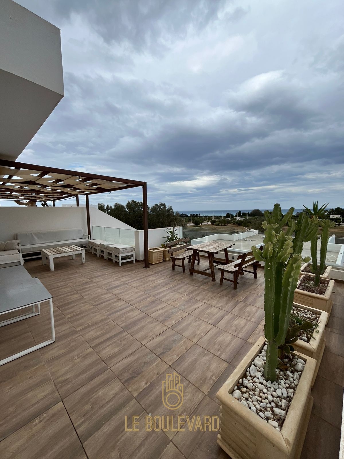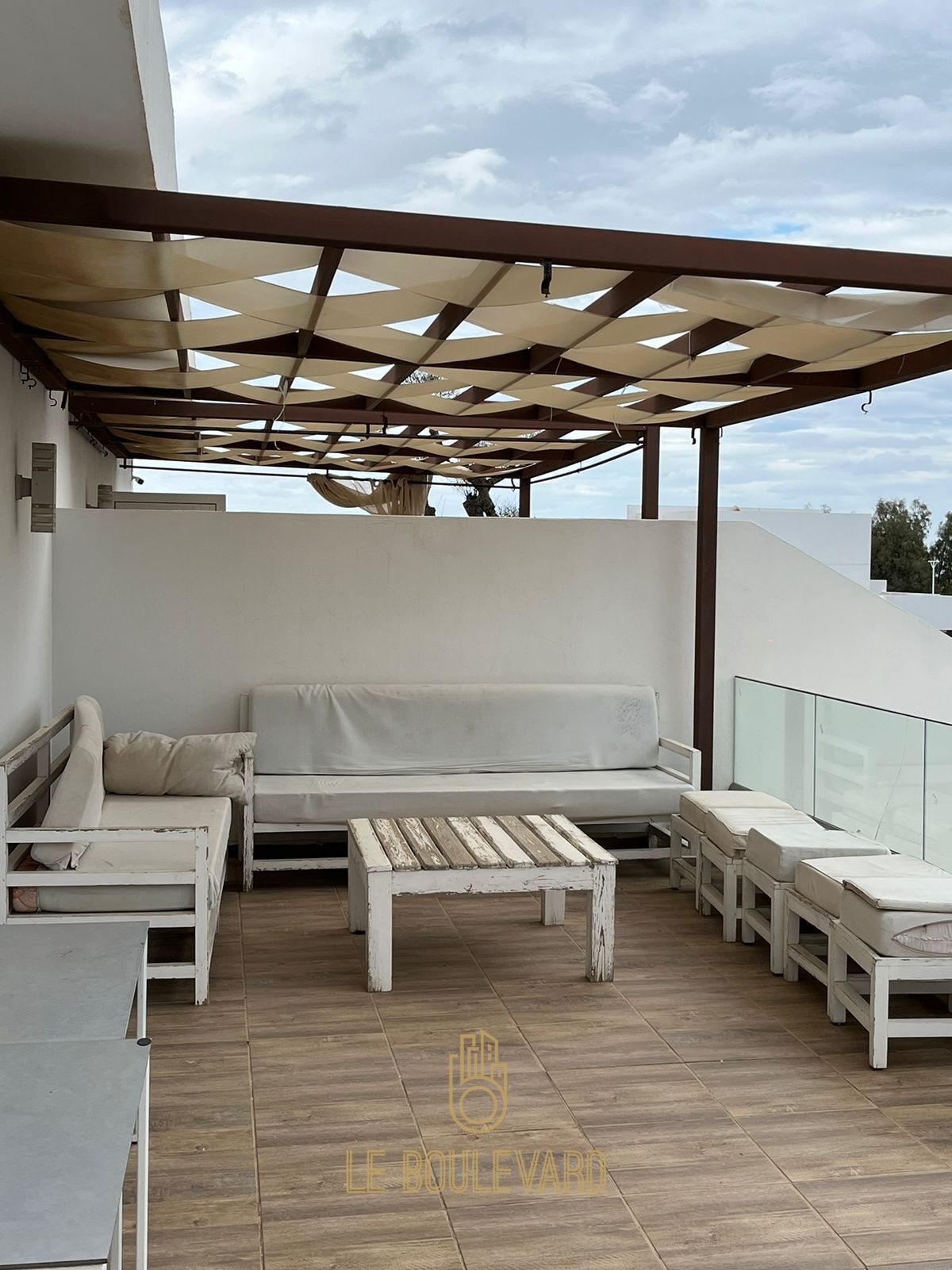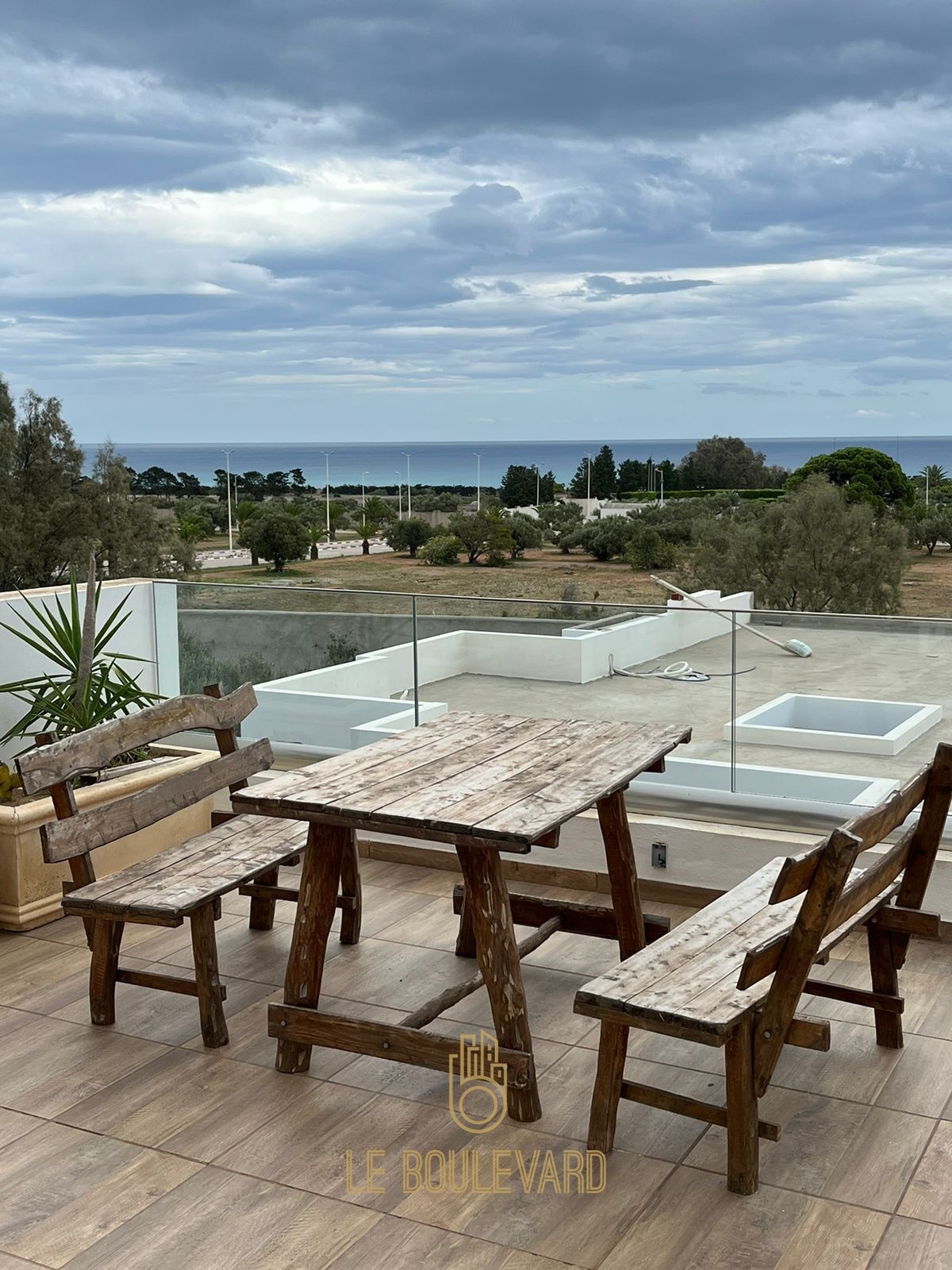Au 2éme étage on a une chambre à coucher et une grande terrasse vue sur mer.
