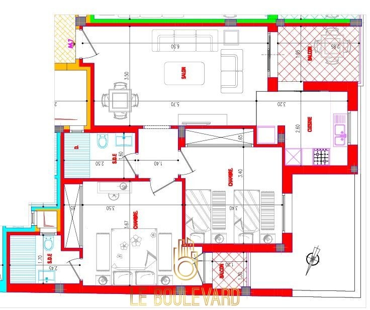 Il se compose d'un salon avec balcon, une cuisine bien équipée (plaque, hotte, four, etc.) la partie nuit comprend une chambre parentale avec salle d’eau et dressing, ainsi qu'une chambre d'enfant, placard et une salle d'eau.