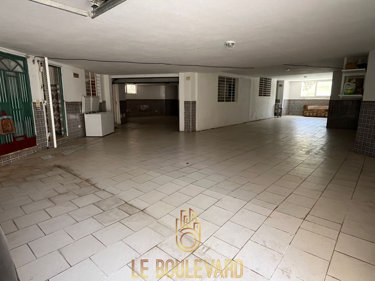 Un sous-sol est disponible : 300 m² en garage contenant un loge gardien avec une salle d'eau.