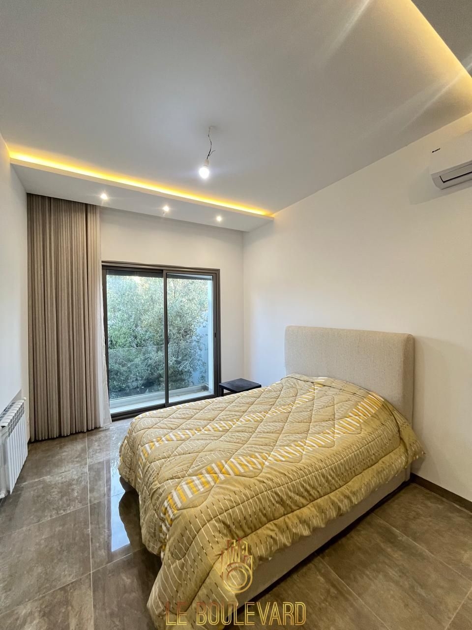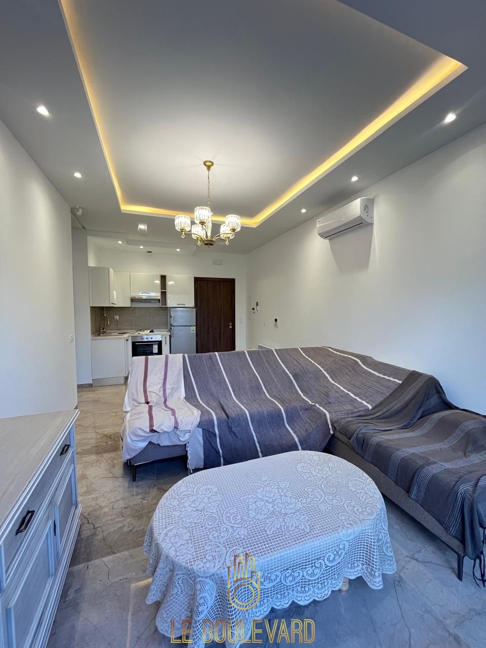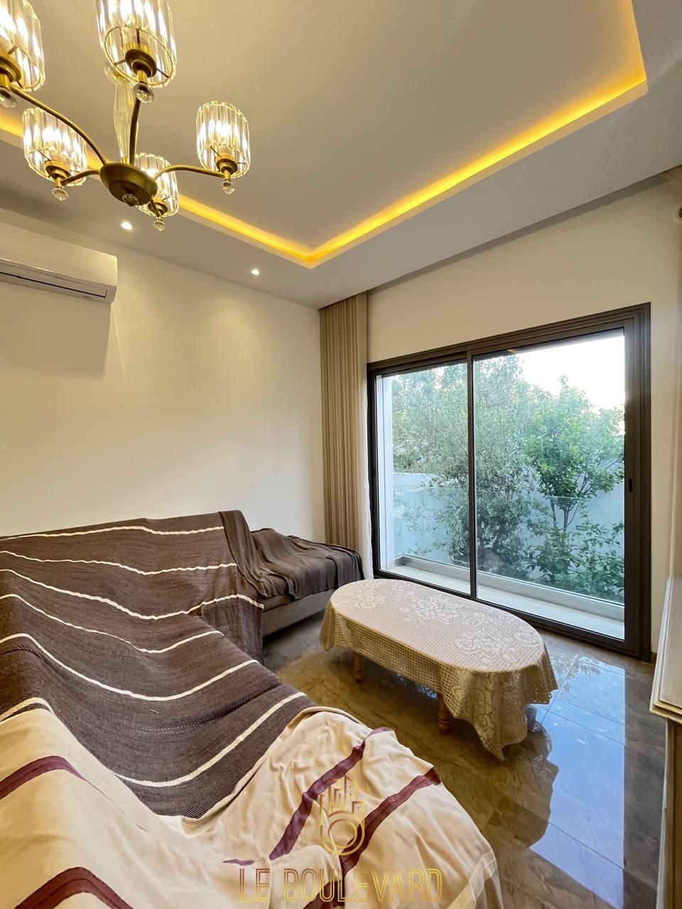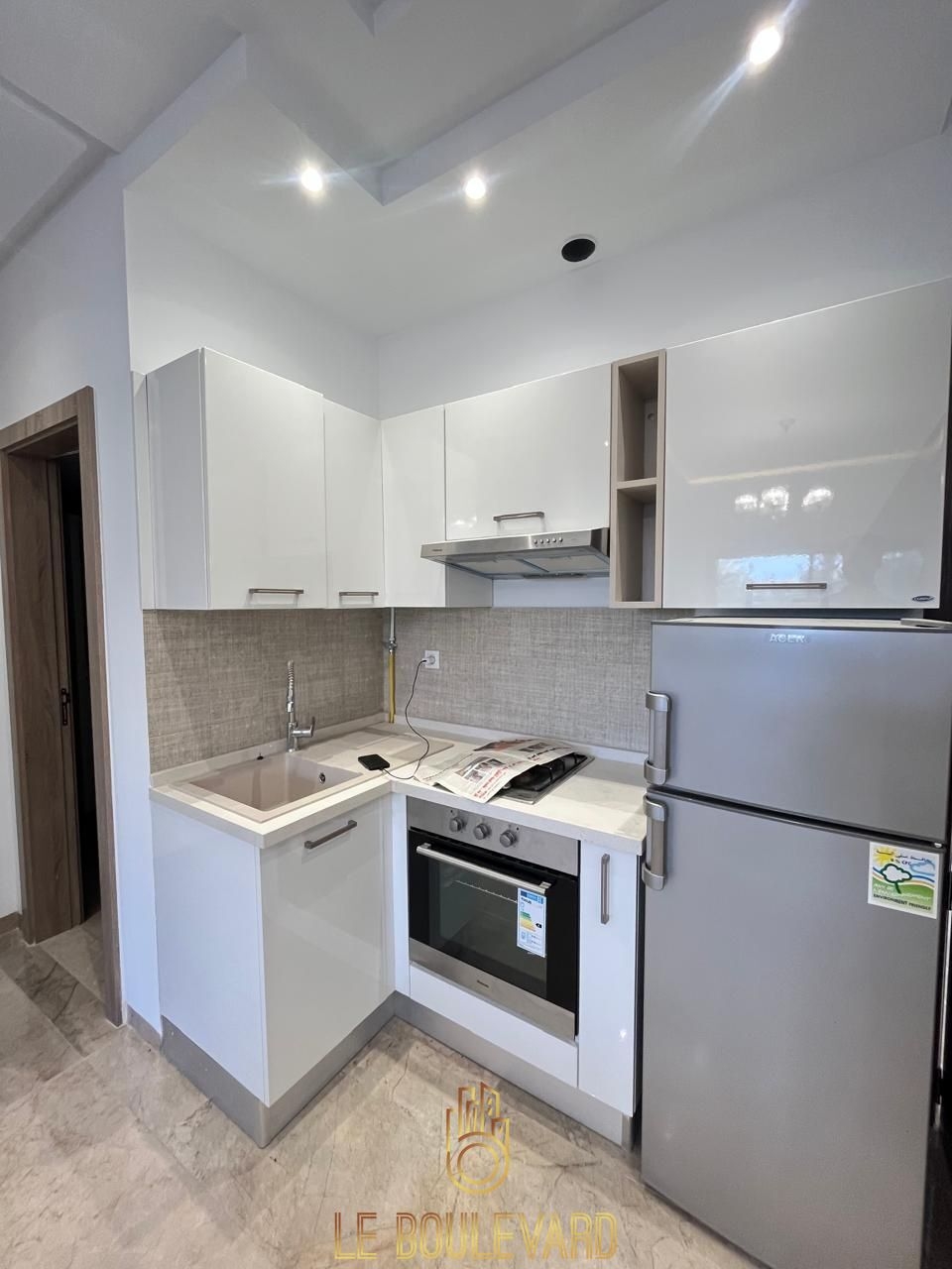Un appartement S+1 de haut standing avec jardin, situé dans un immeuble à Mrezga, Hammamet.