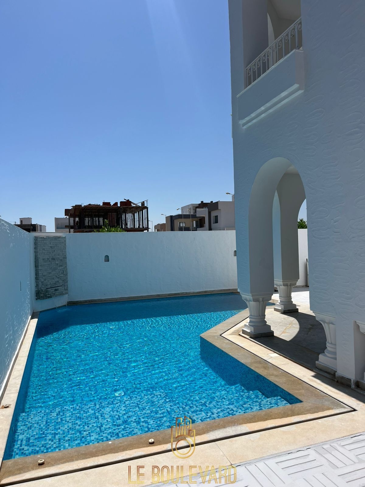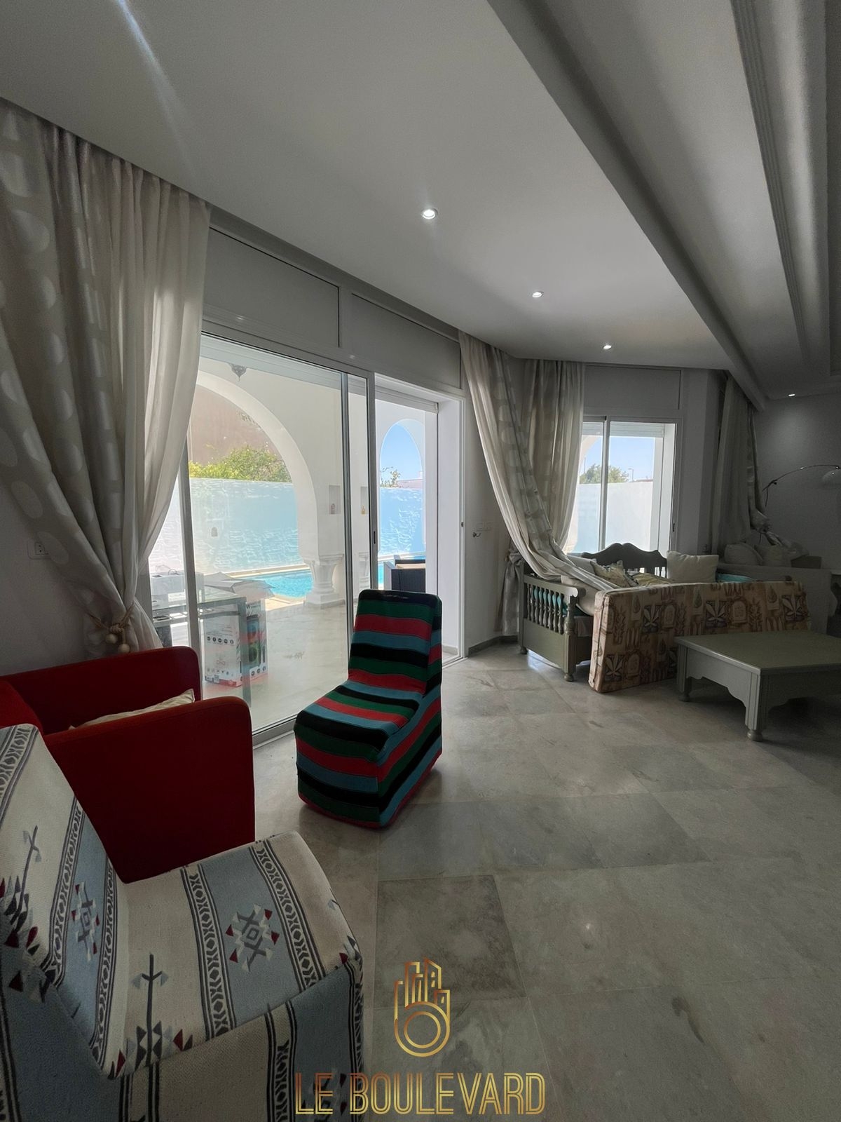 Villa S+4 haut standing avec piscine au bord de la mer, située à Jinene Benikhiar, Nabeul.