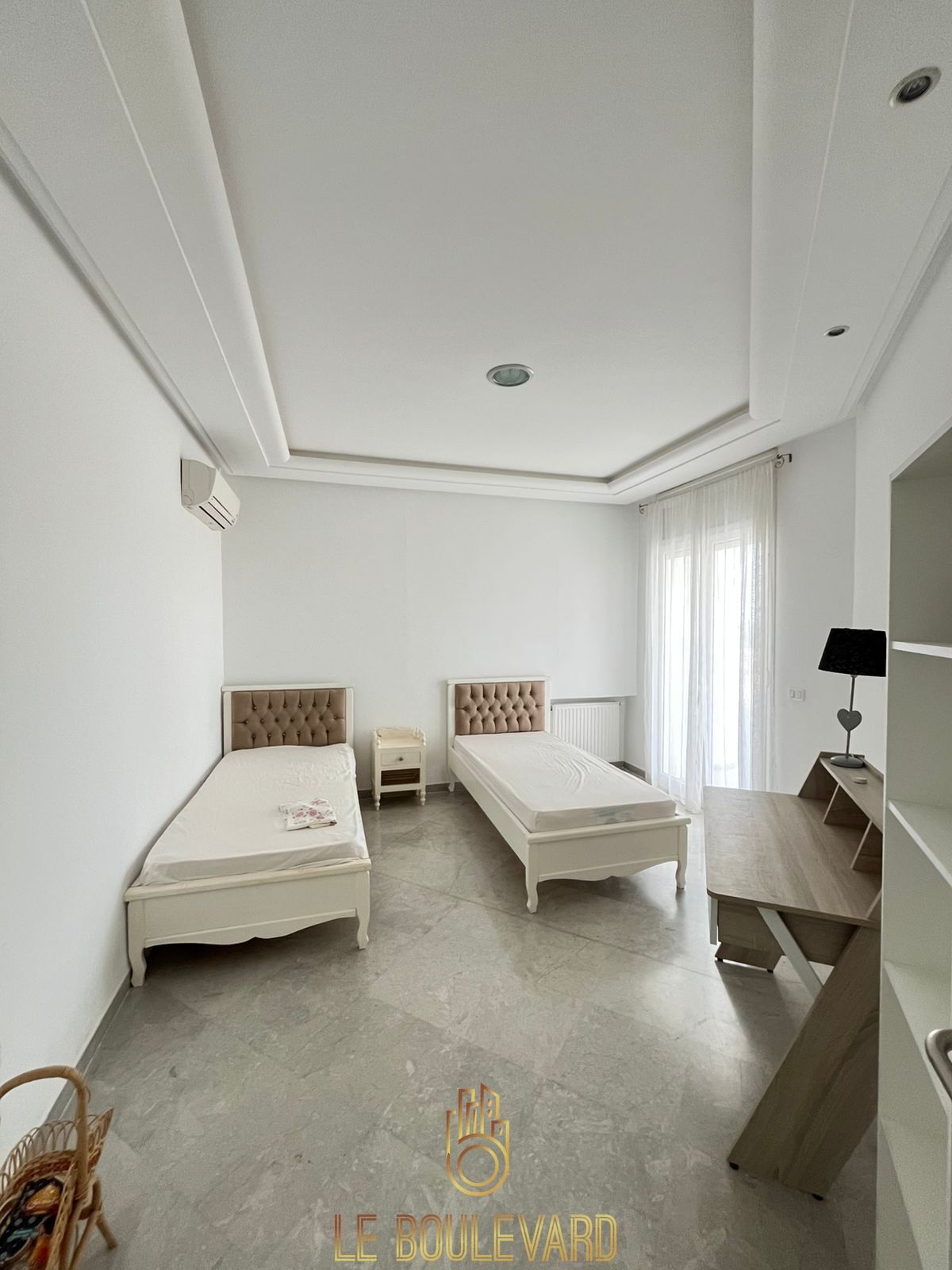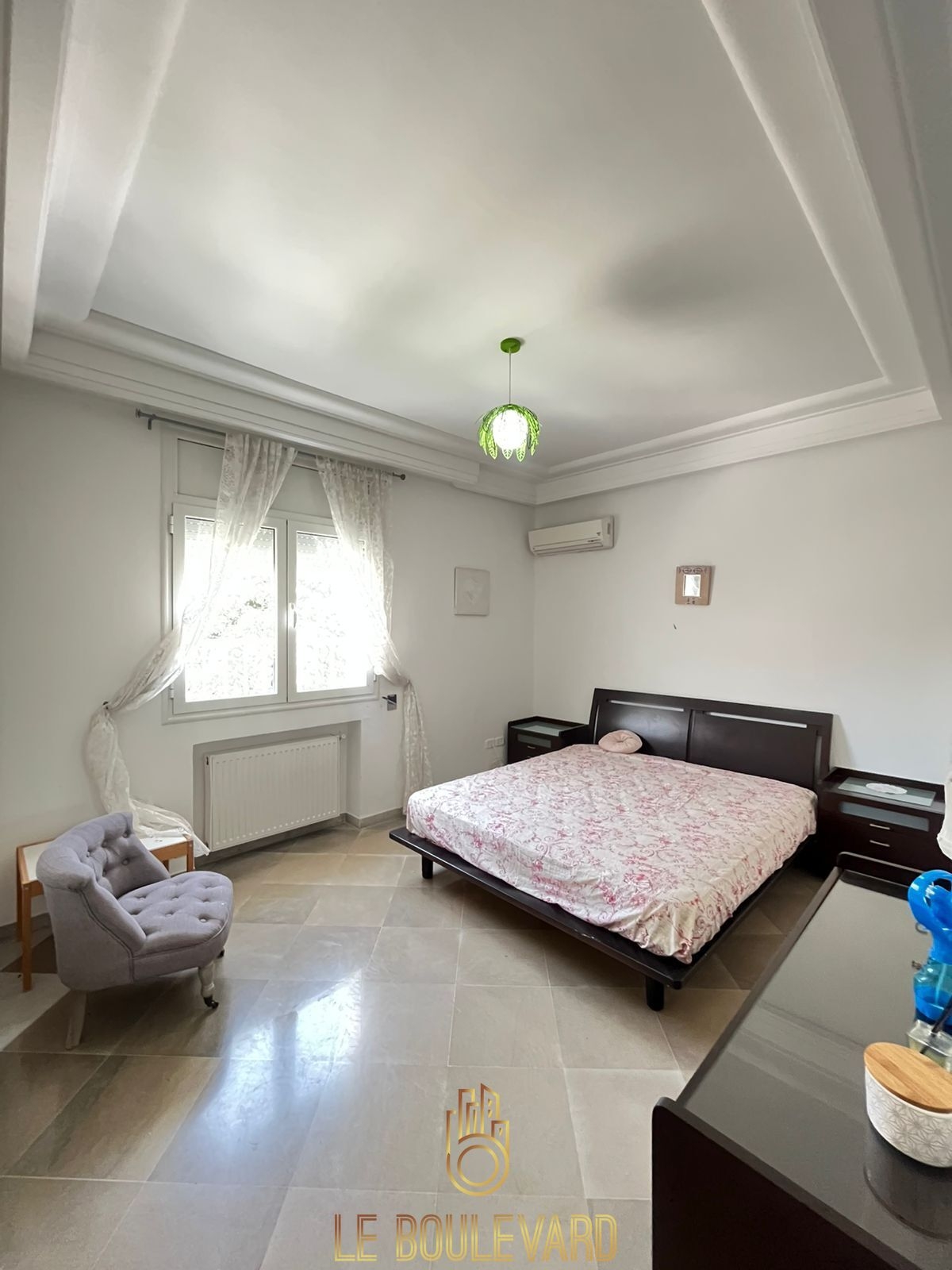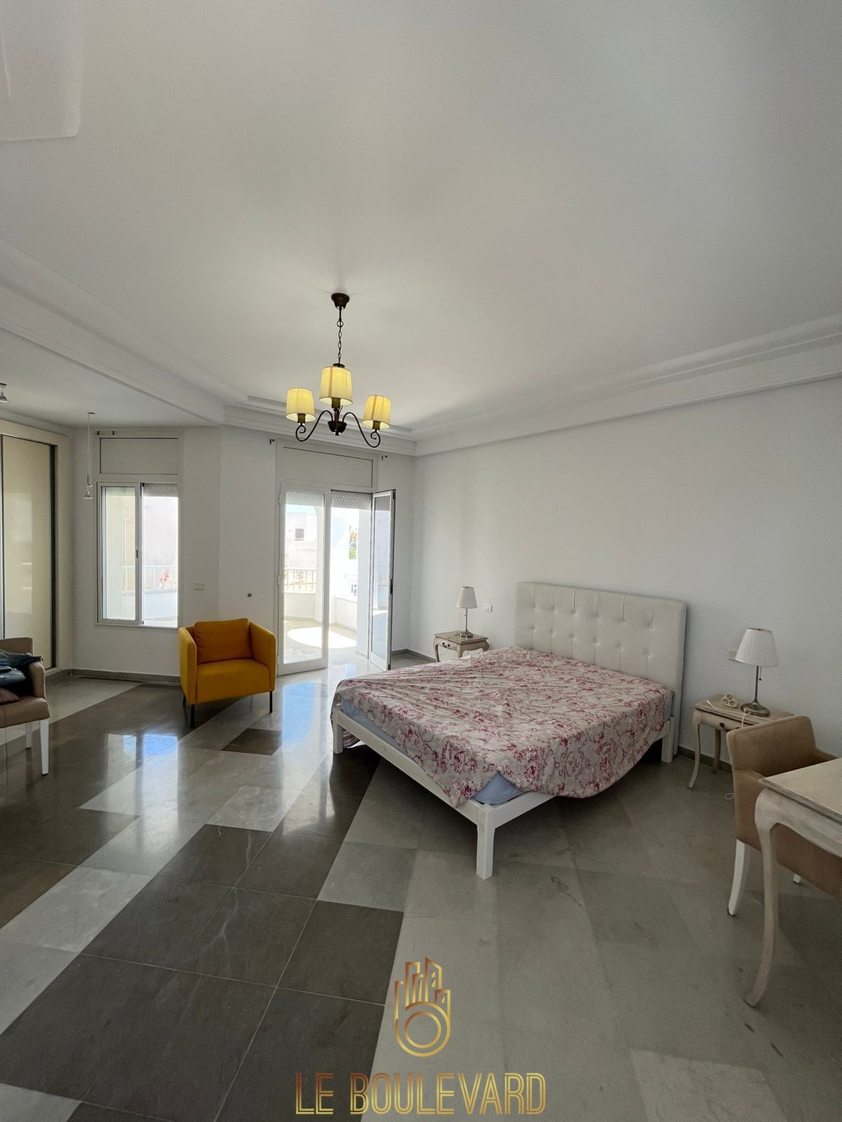 Au deuxième étage, vous trouverez une seconde suite parentale ainsi qu’une spacieuse terrasse de style arabesque avec une vue panoramique sur la mer.