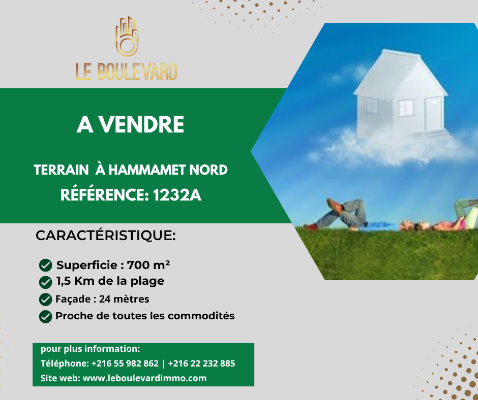 Un terrain entouré par des villa de luxe situé à cité diamant, Hammamet Nord.