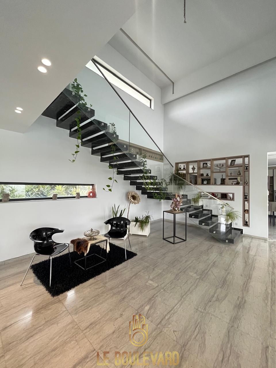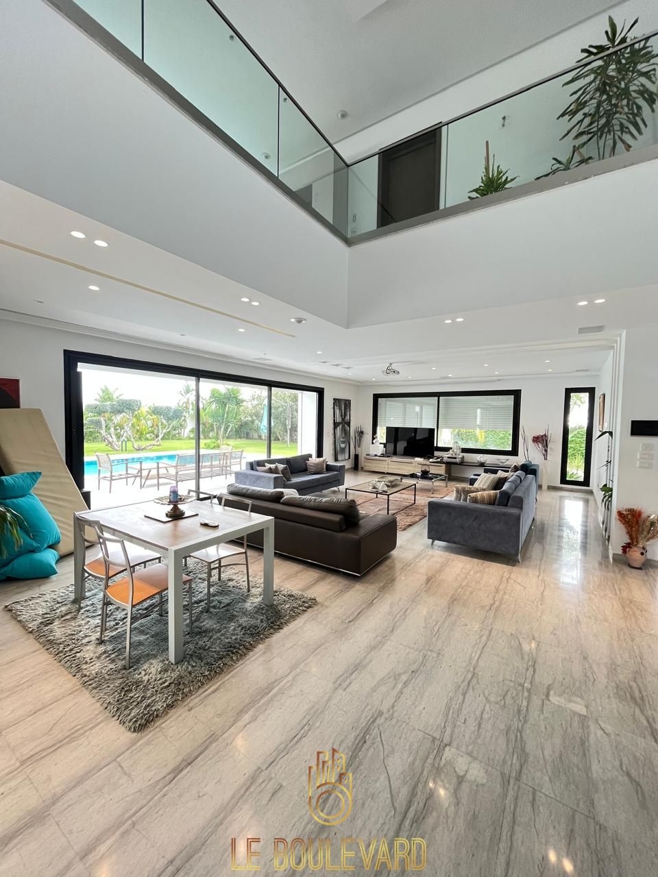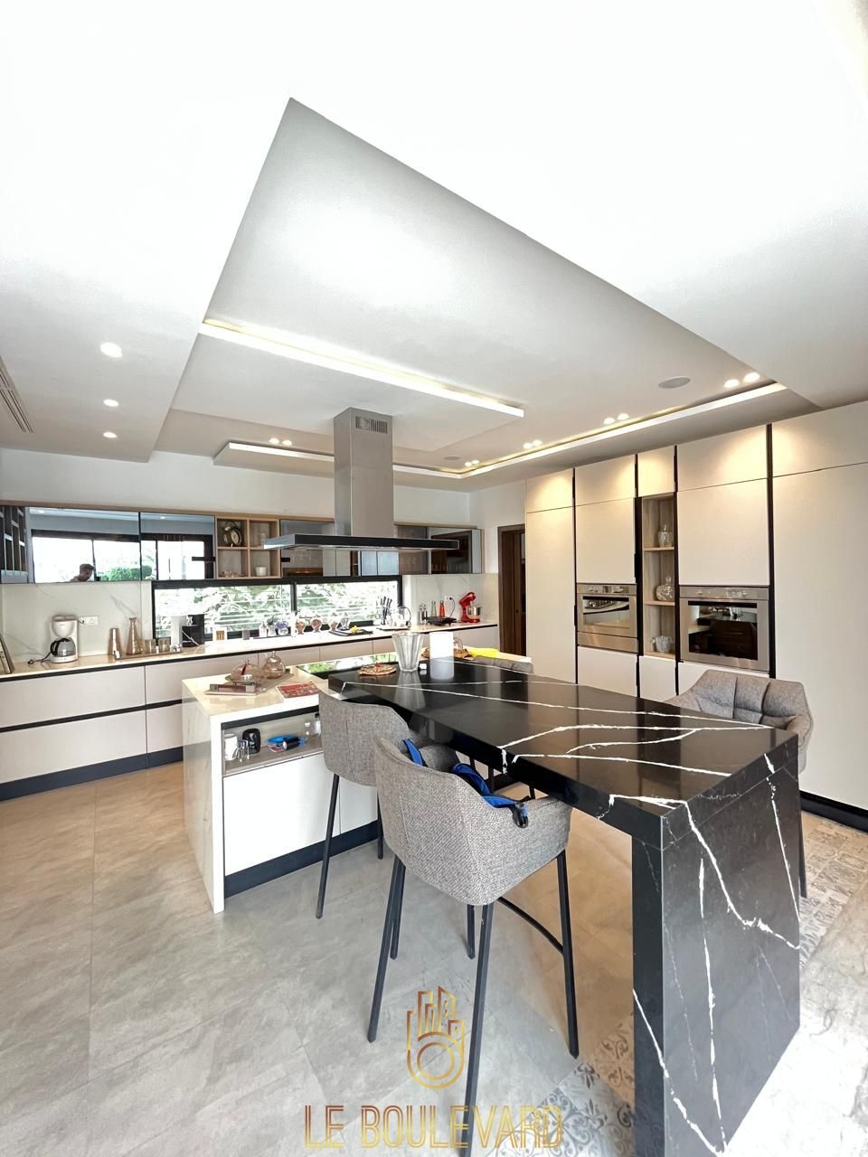 Au rez-de-chaussée on a un spacieux et lumineux salon ouvrant sur la piscine, une salle à manger, deux chambres à coucher, deux salles d’eau et deux cuisines entièrement équipées.