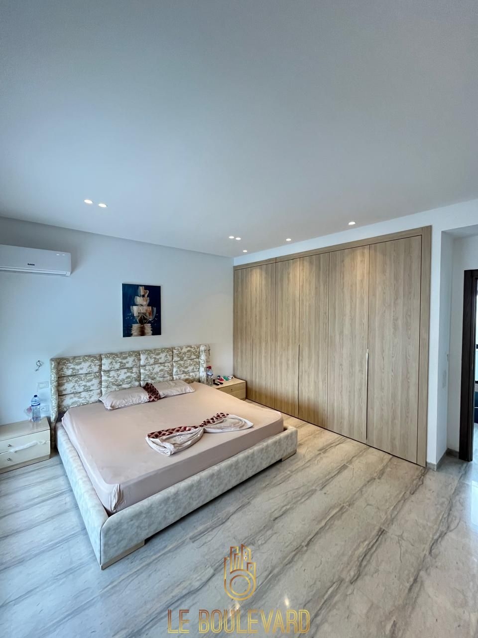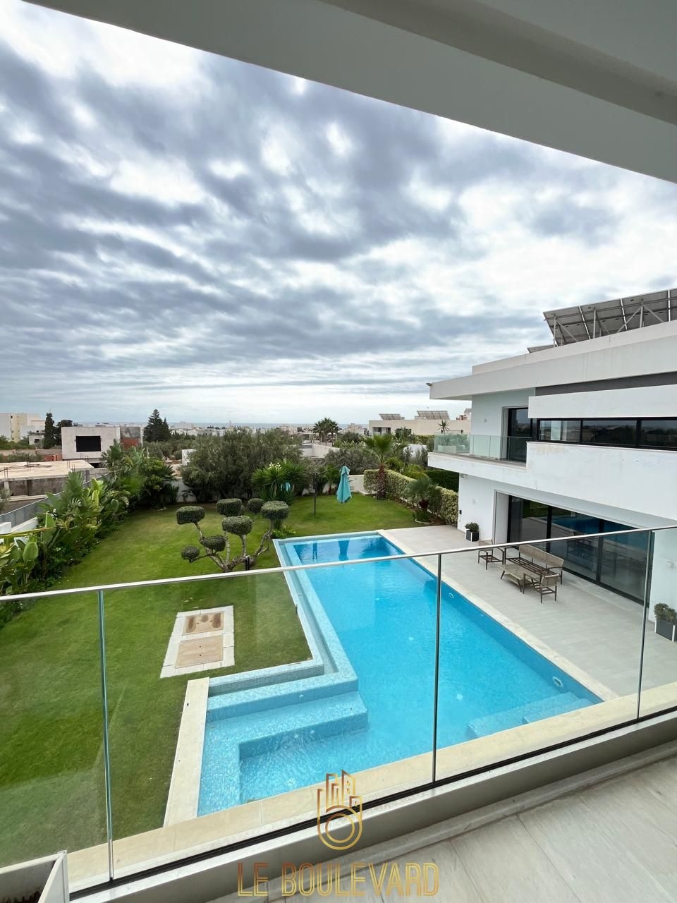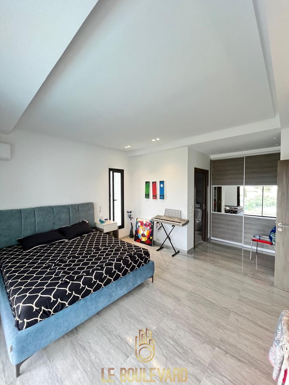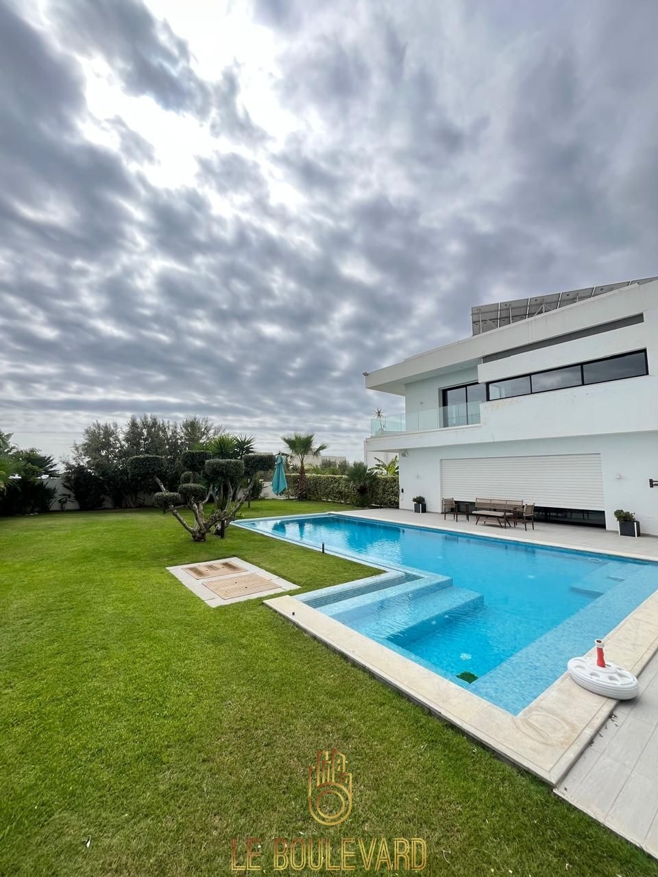 Une villa de maître S+6 avec piscine située à Mrezge – Nabeul, dans un quartier résidentiel de luxe entouré de villas haut de gamme.