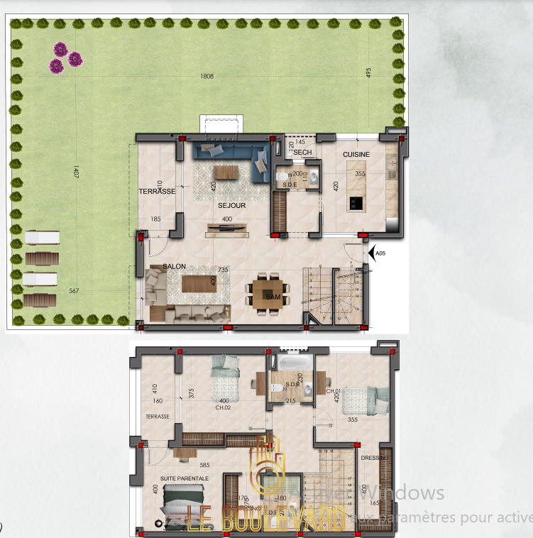 Un appartement Duplex S+3 avec jardin haut standing Direct promoteur, dans une résidence bien sécurisée à Soukra, chotrana 2, Tunis.