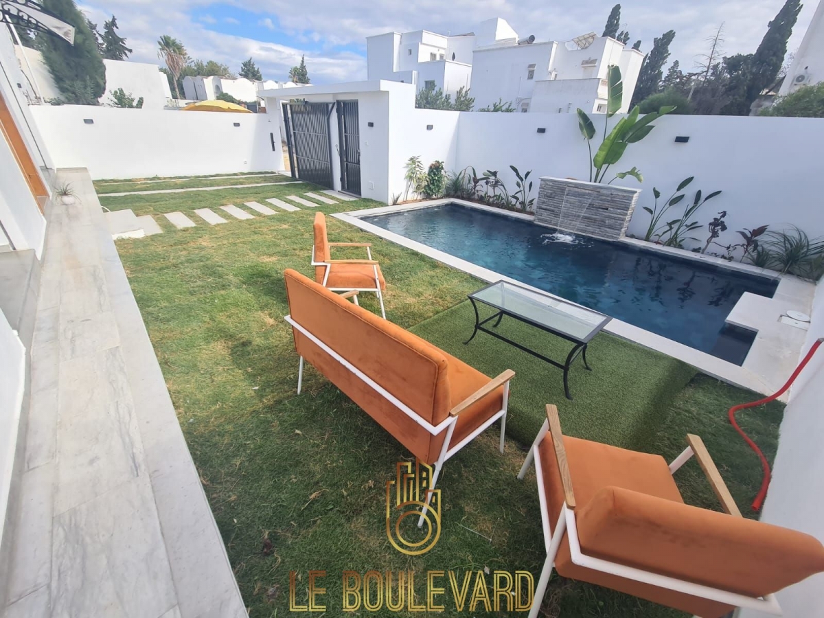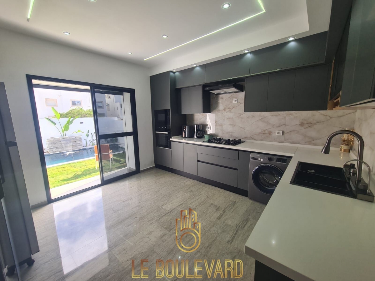 Villa S+3 avec piscine ; haut standing située dans une quartier calme à Hammamet proche d’hôtel sindbad.