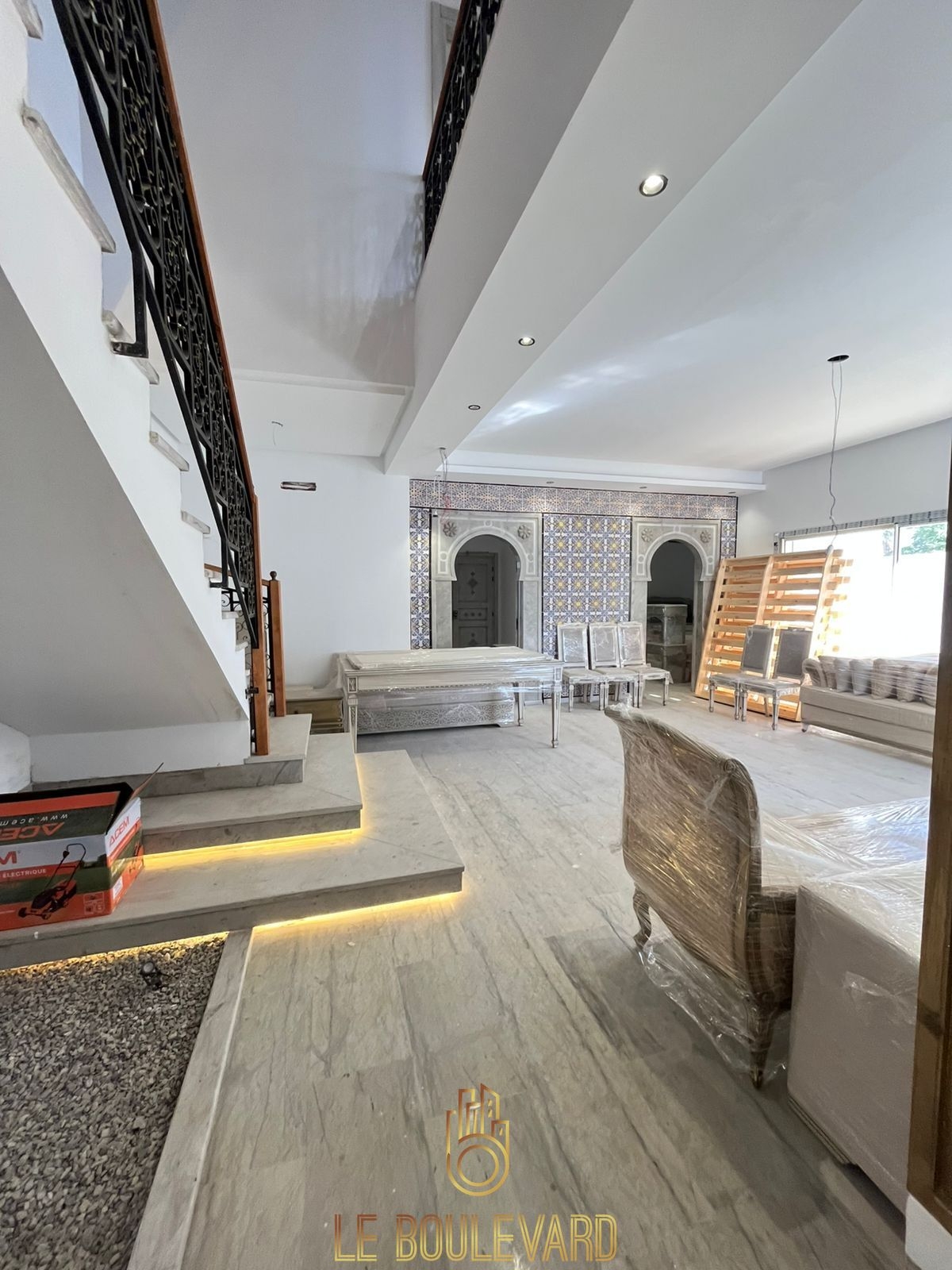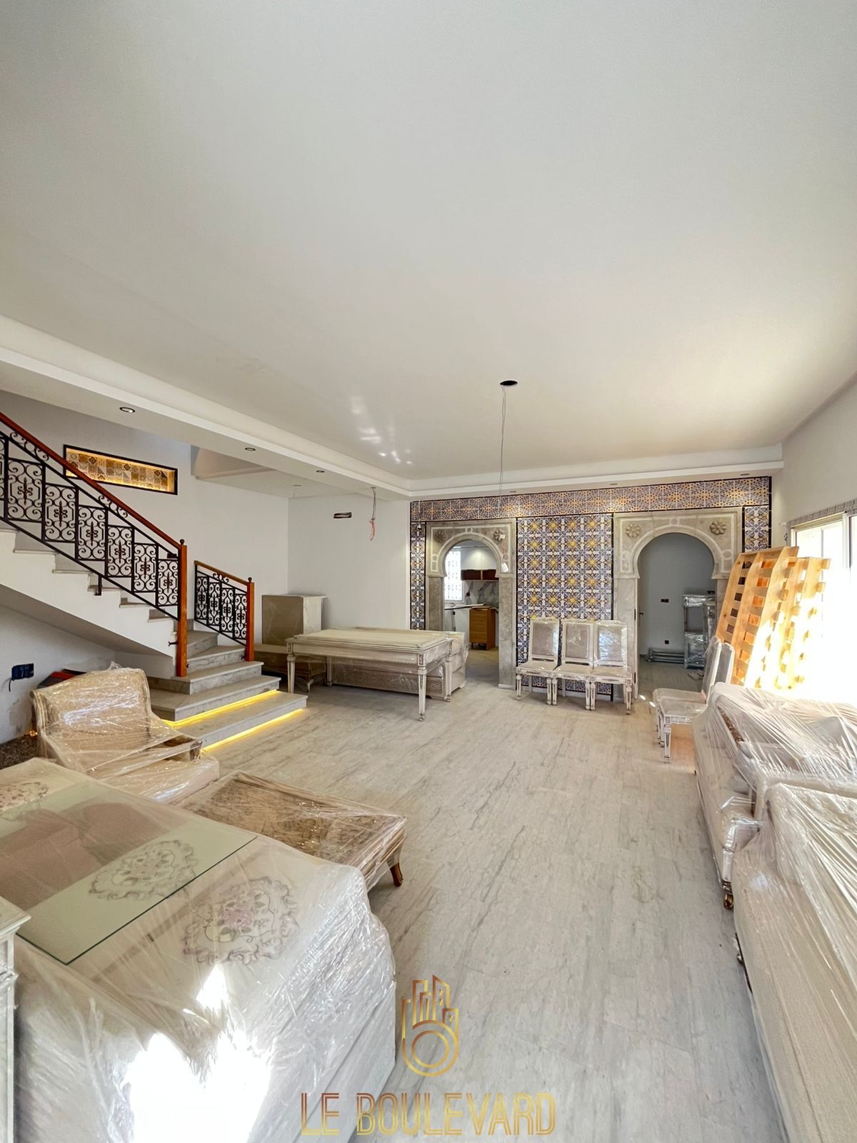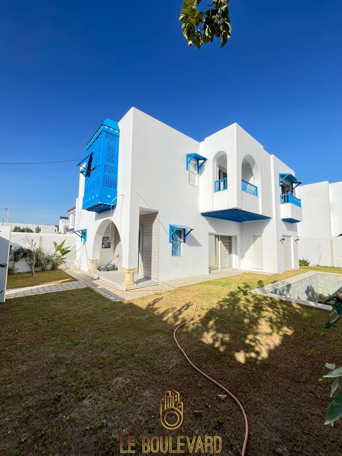 Une Villa duplex S+4 Style arabesque avec piscine haut standing située dans l'environnement prestigieux d'Hammamet, offrez-vous le luxe ultime et la proximité de la mer.