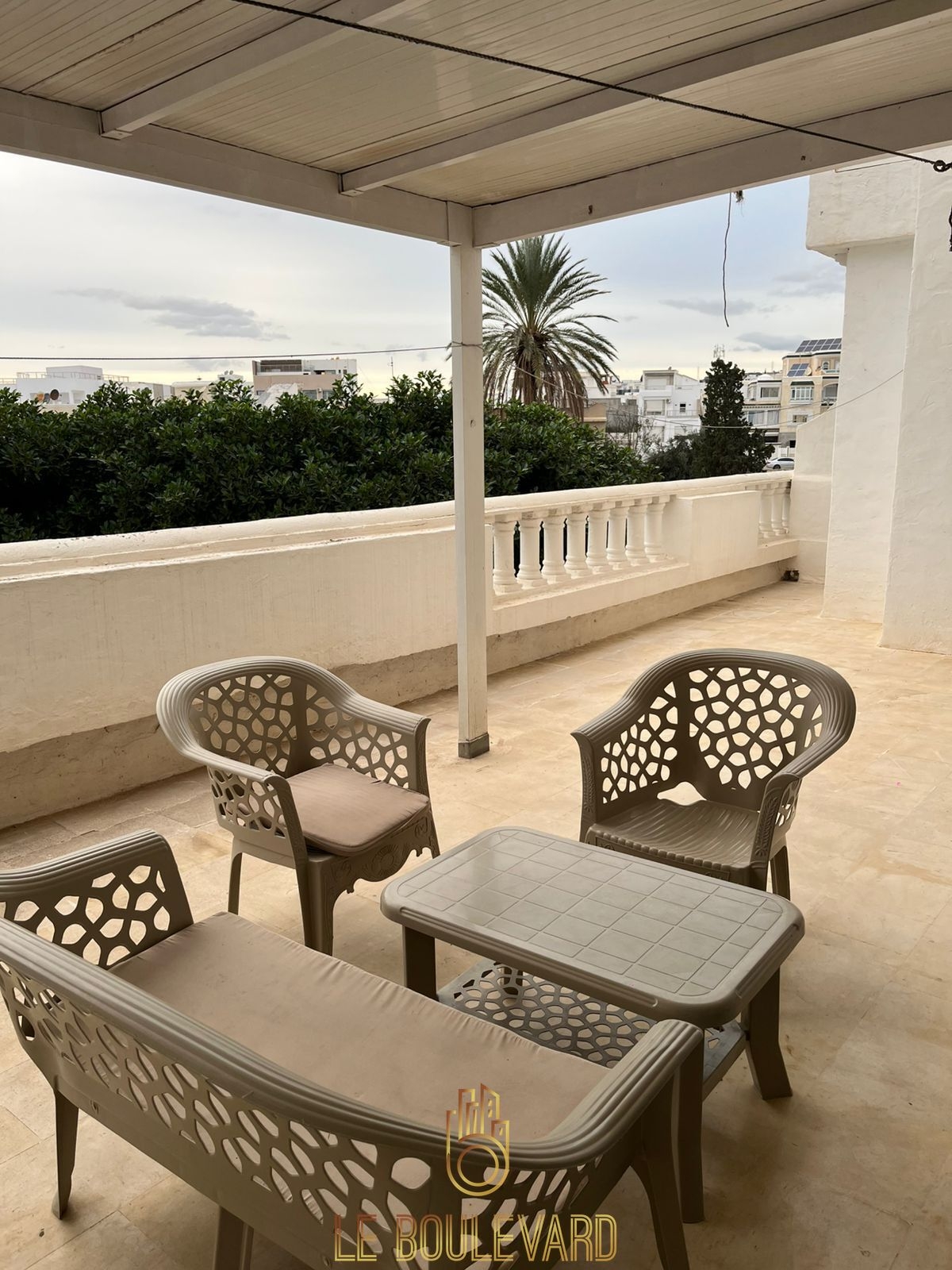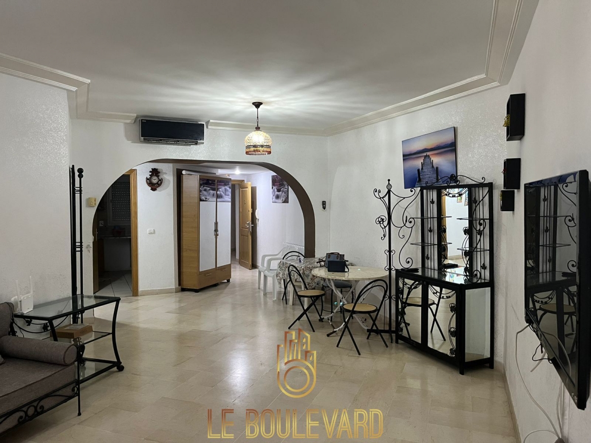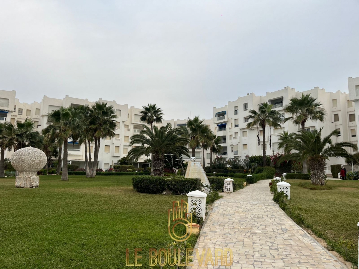 Un appartement S+2 situé dans une résidence pied dans l’eau, gardée par des agents de sécurité et équipée de caméras de surveillance à Hammamet.