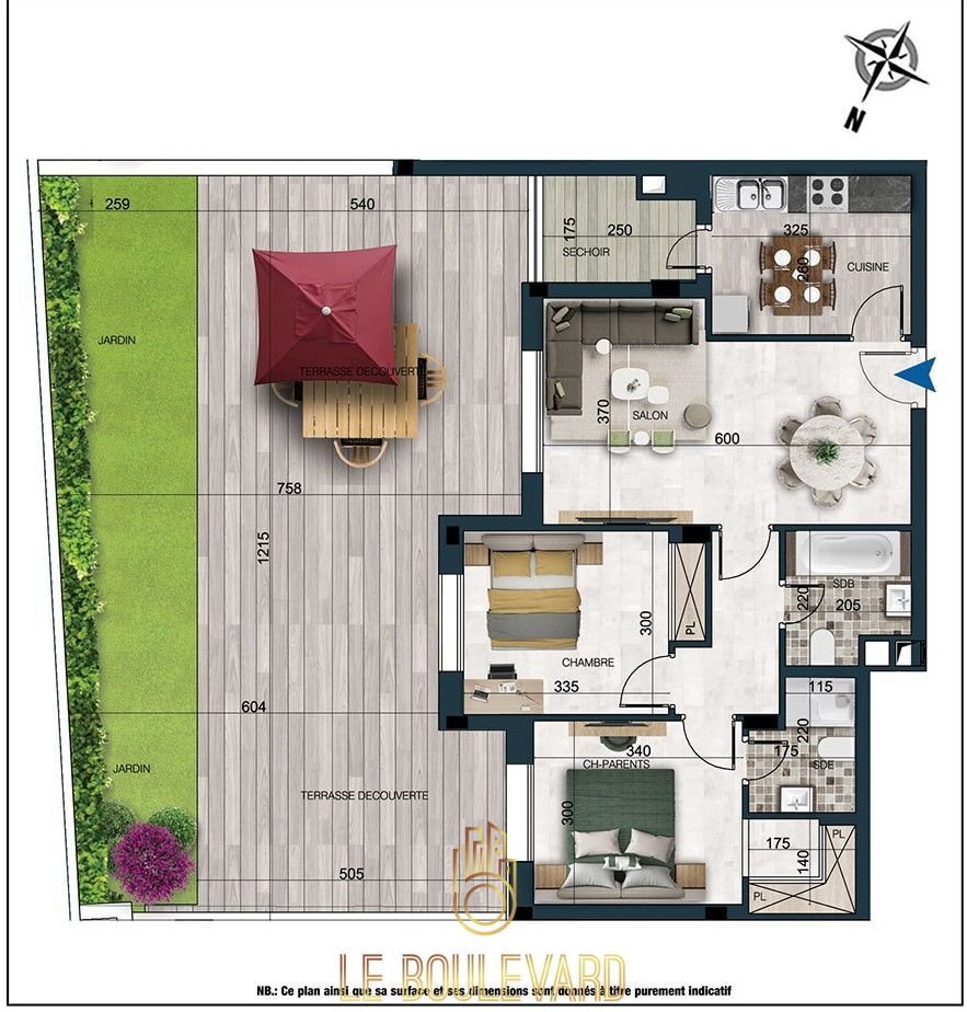 Un appartement S+2 haut standing avec jardin Direct promoteur, dans une résidence bien sécurisée à Nouvelle Soukra, Tunis.