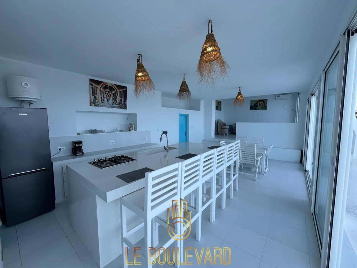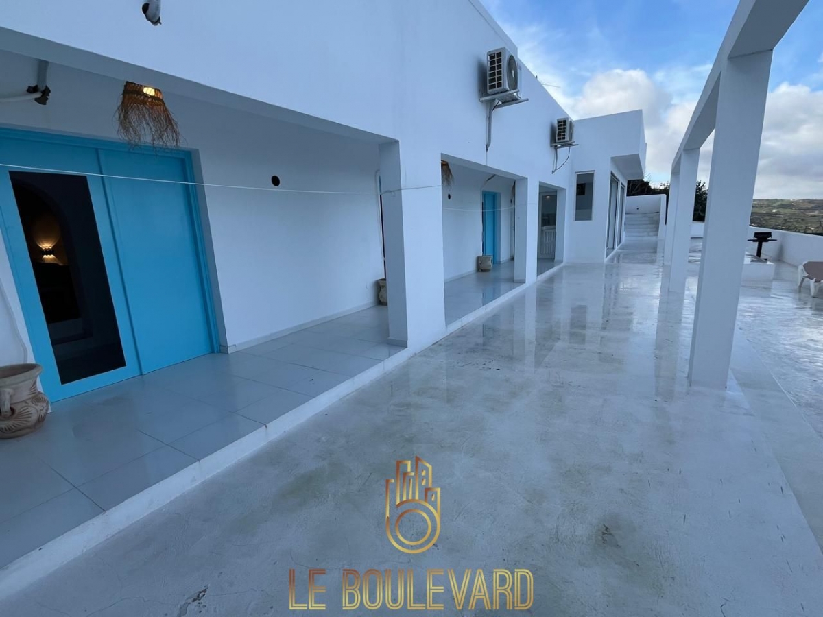 Nichée sur les hauteurs de Rafraf, cette villa S+3 de charme offre une vue panoramique imprenable sur la mer et la nature, dans un environnement paisible et raffiné.