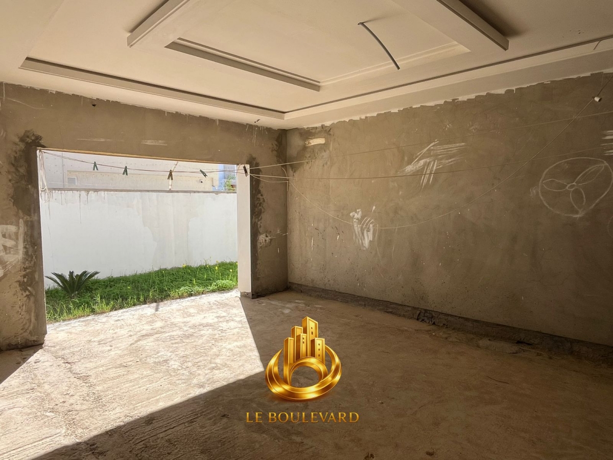 Au rez-de-chaussée, elle comprend S+2 inachevée avec jardin, offrant de beaux volumes à personnaliser selon vos envies, ainsi qu’un studio S+1 habitable, idéal pour un usage locatif ou pour accueillir des invités.