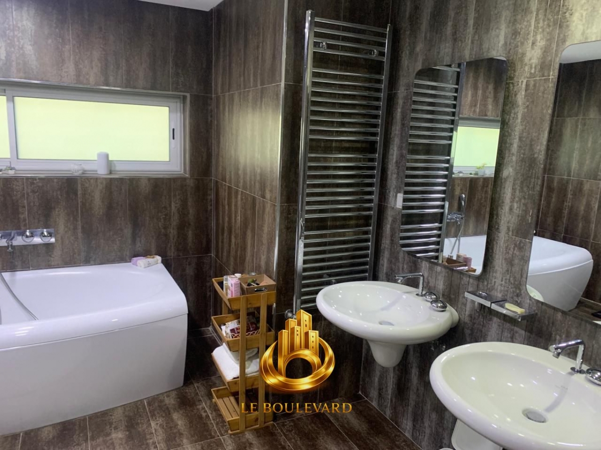 Rez-de-chaussée : Deux salons avec terrasse, une suite parentale, 2 chambres à coucher avec dressing, une salle de bain, une salle d’eau pour invités et jardin.