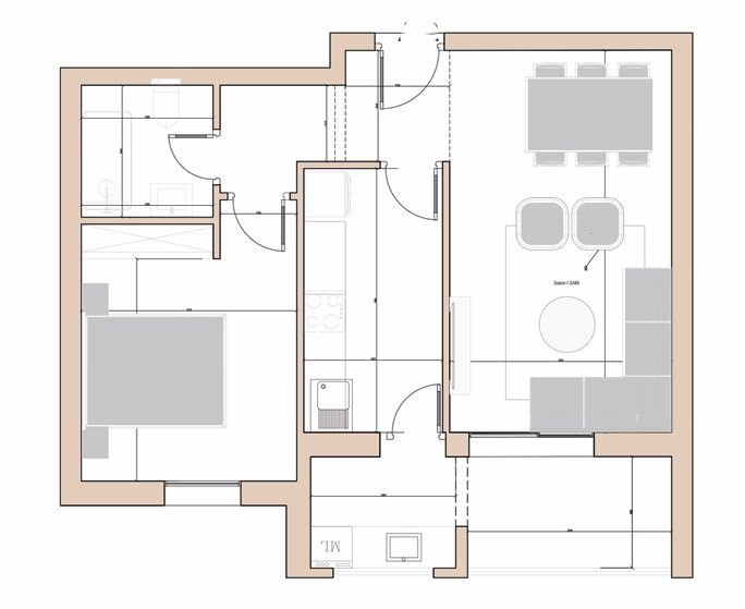Il se compose d’un salon spacieux et lumineux avec balcon, d’une cuisine indépendante bien équipée (plaque, hotte, etc.) avec séchoir, d’une salle d’eau et d’une chambre à coucher avec dressing.