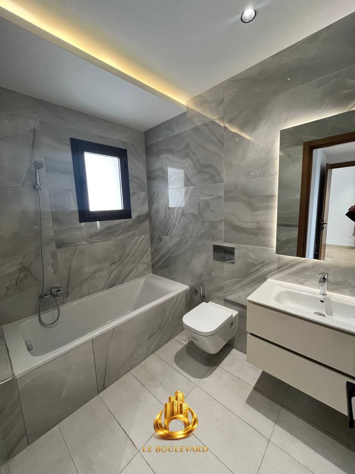 Un appartement S+2 haut standing avec jardin direct promoteur, dans une résidence bien sécurisée à Soukra, Tunis.