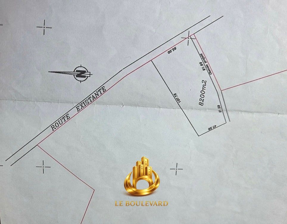 Un terrain clôturé d’une superficie de 8200 m², idéalement situé sur une route principale goudronnée.