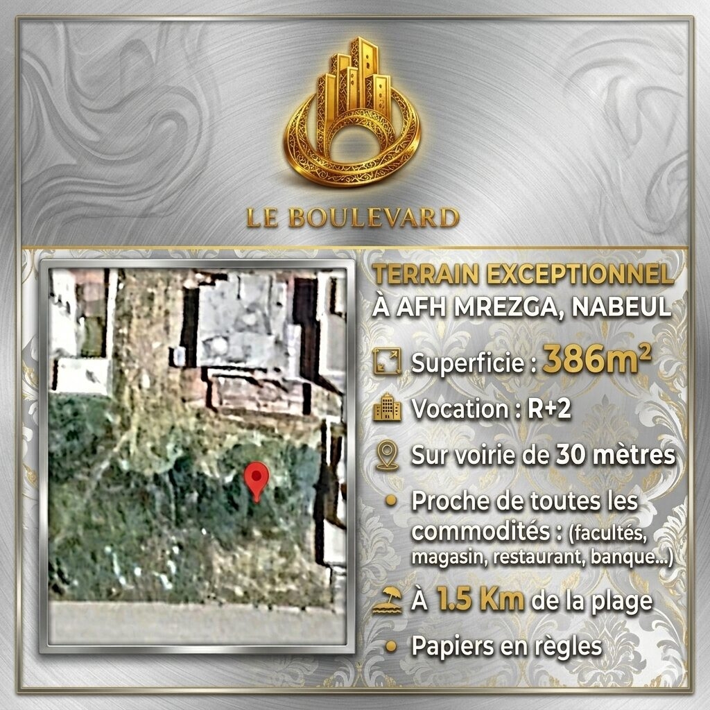 Un terrain viabilisé situé dans une zone mixte (villas et résidentielle), à l’AFH Mrezga, Cité El Wafa, Nabeul