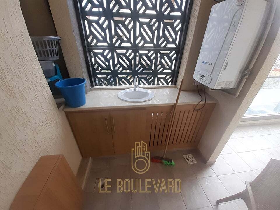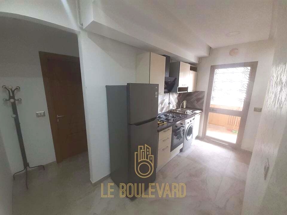 L'entrée donne sur un salon lumineux avec une terrasse, une cuisine bien équipée hotte, plaques, four, frigidaire, machine à laver (tous premier usage), une chambre à coucher avec dressing et salle d’eau