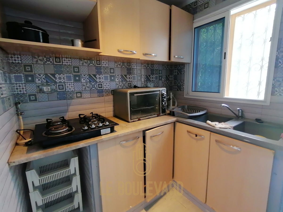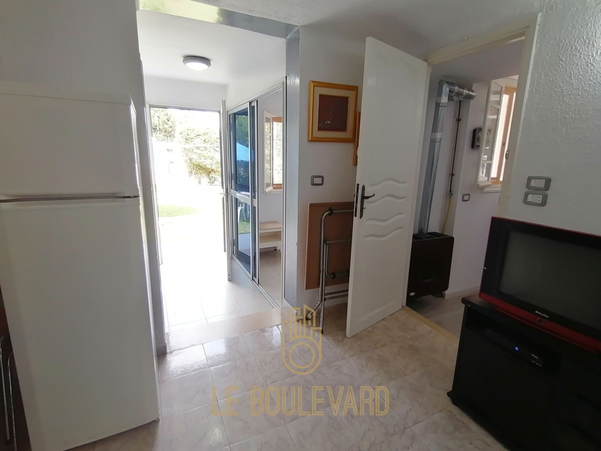 Il se compose d'un salon, 2 chambres à coucher, salle d'eau, une cuisine bien équipée et un grand jardin