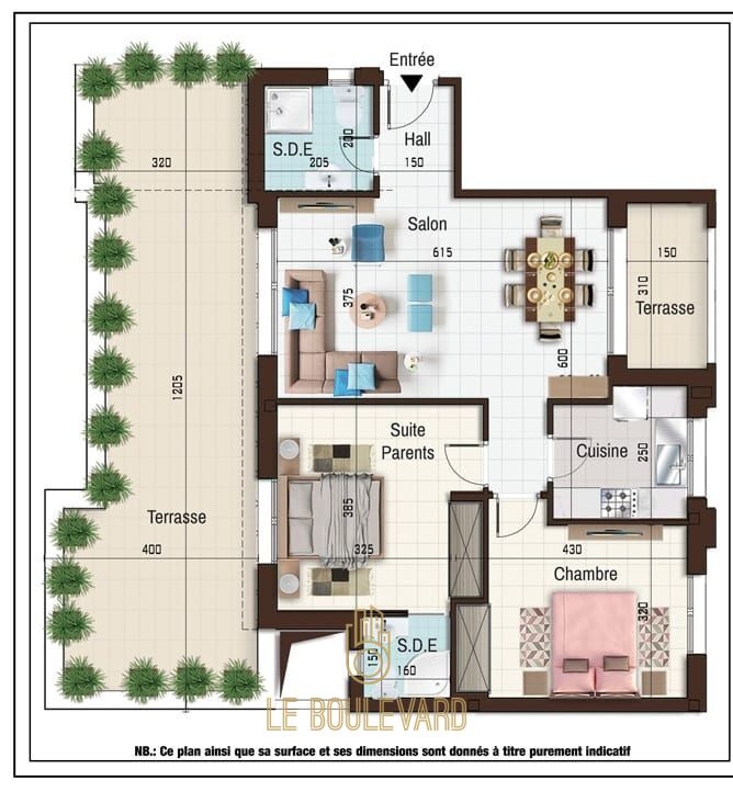 Il se compose d'un salon avec 2 terrasses, salle d’eau, une chambre à coucher avec dressing, une suite parentale avec dressing et salle d’eau, une cuisine indépendante et bien équipée et une grande terrasse vue sur mer.