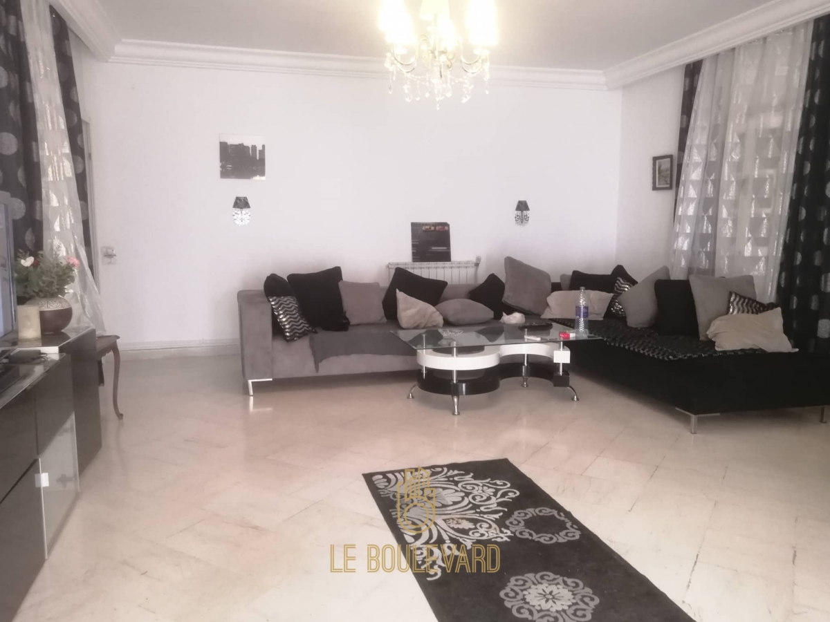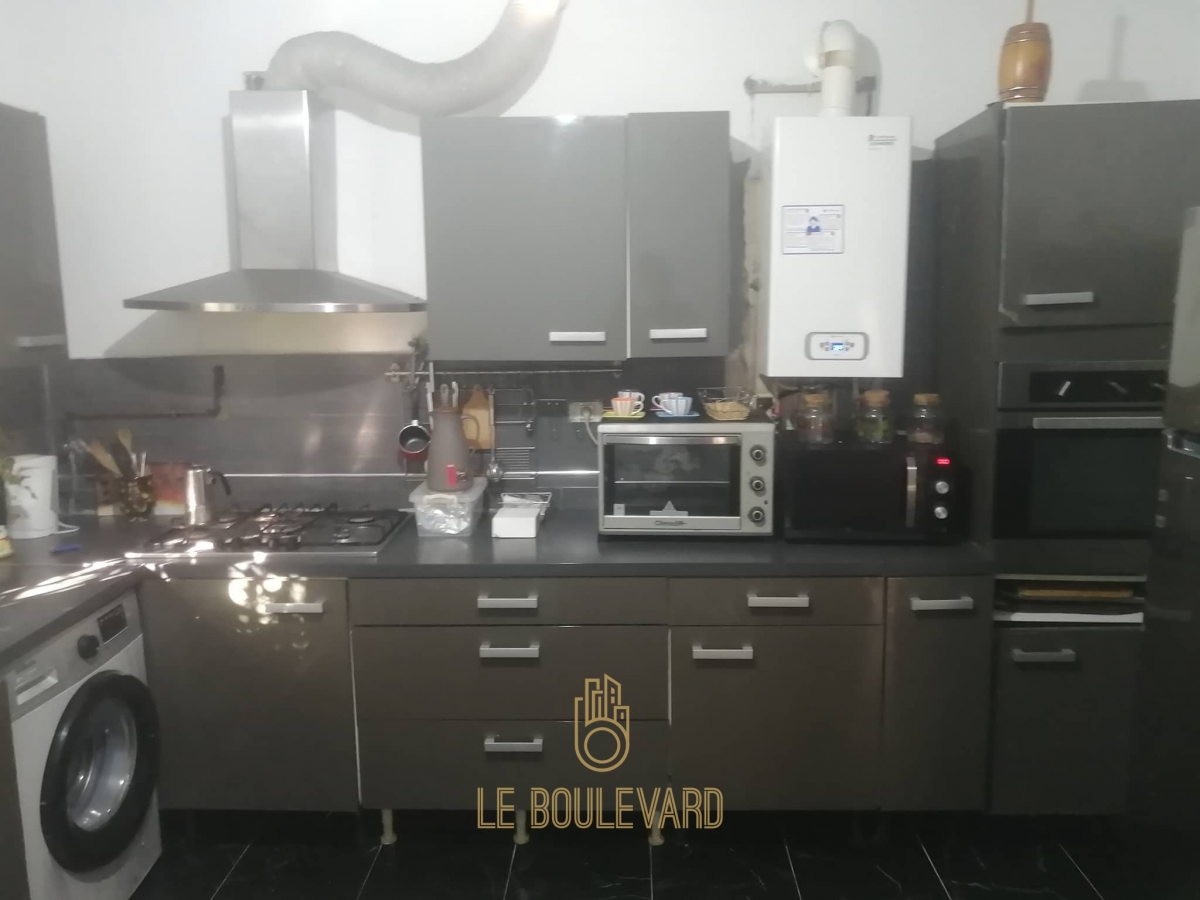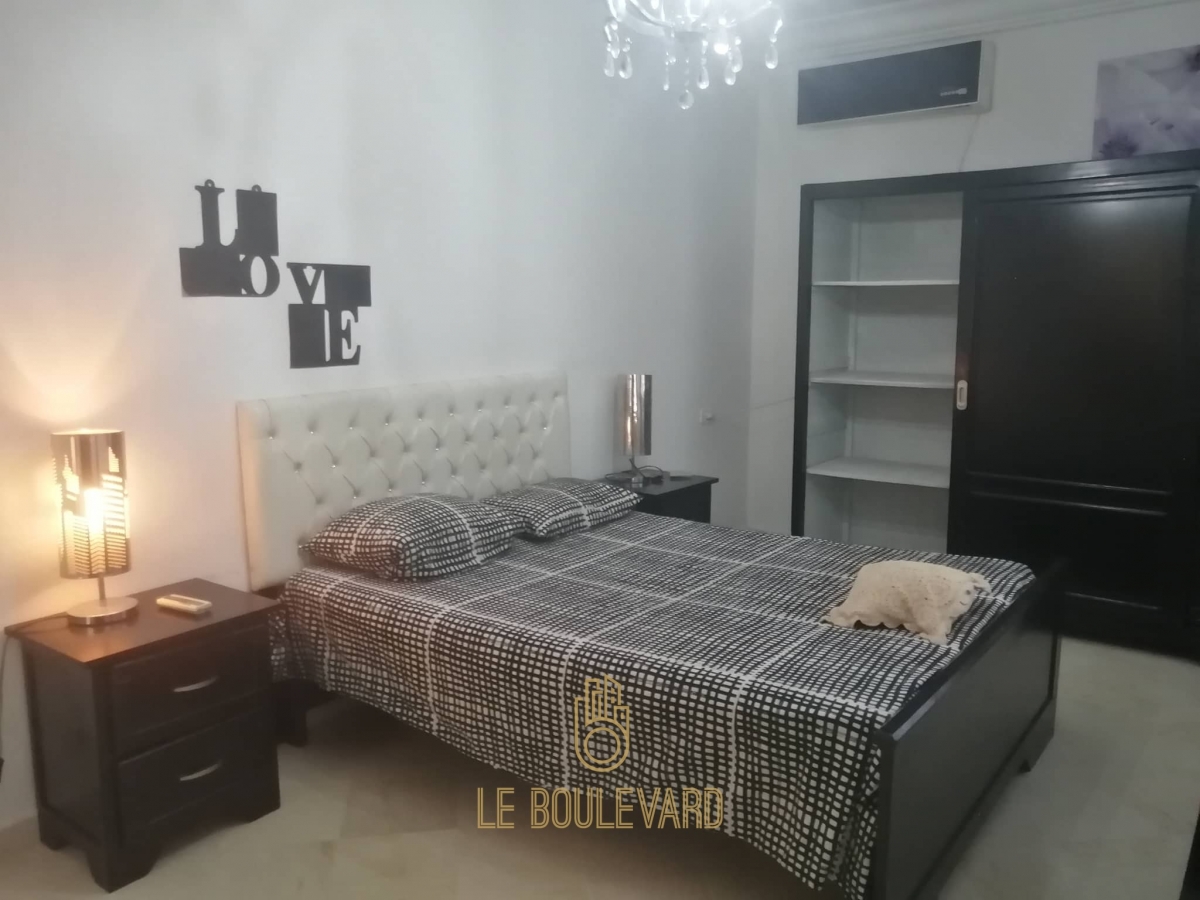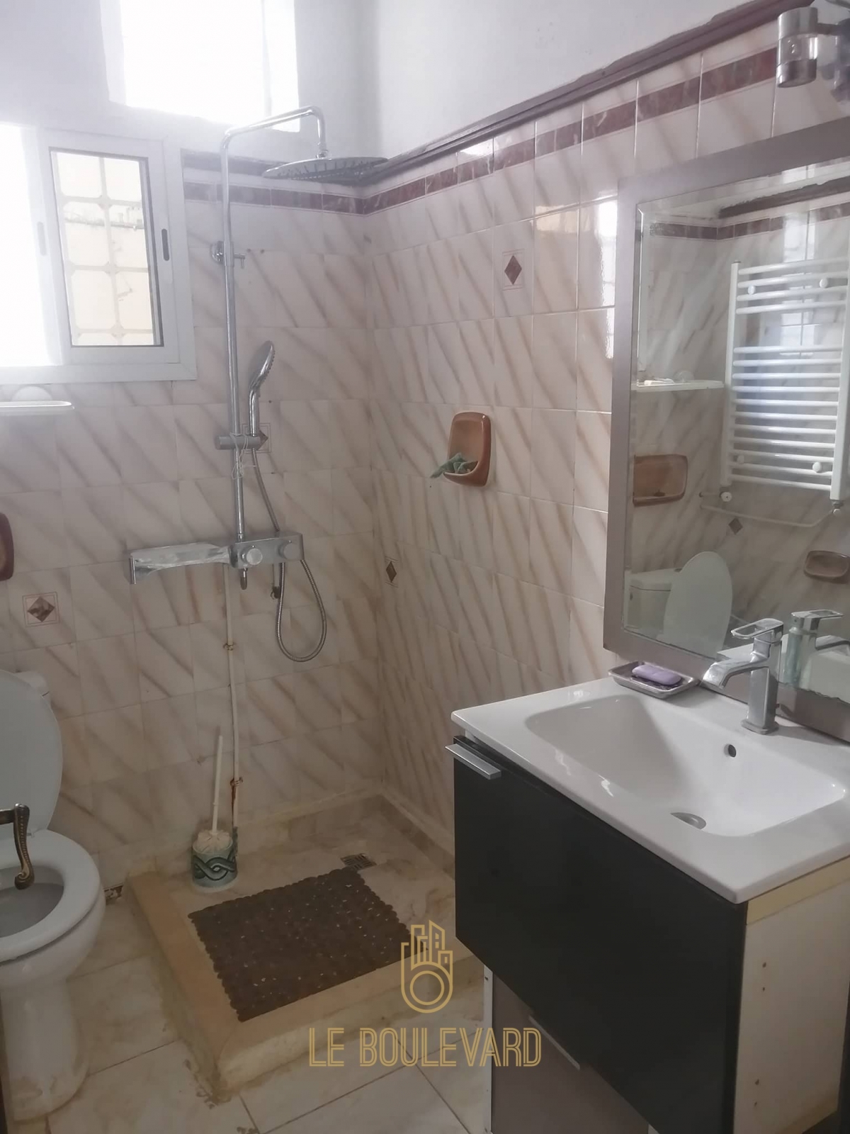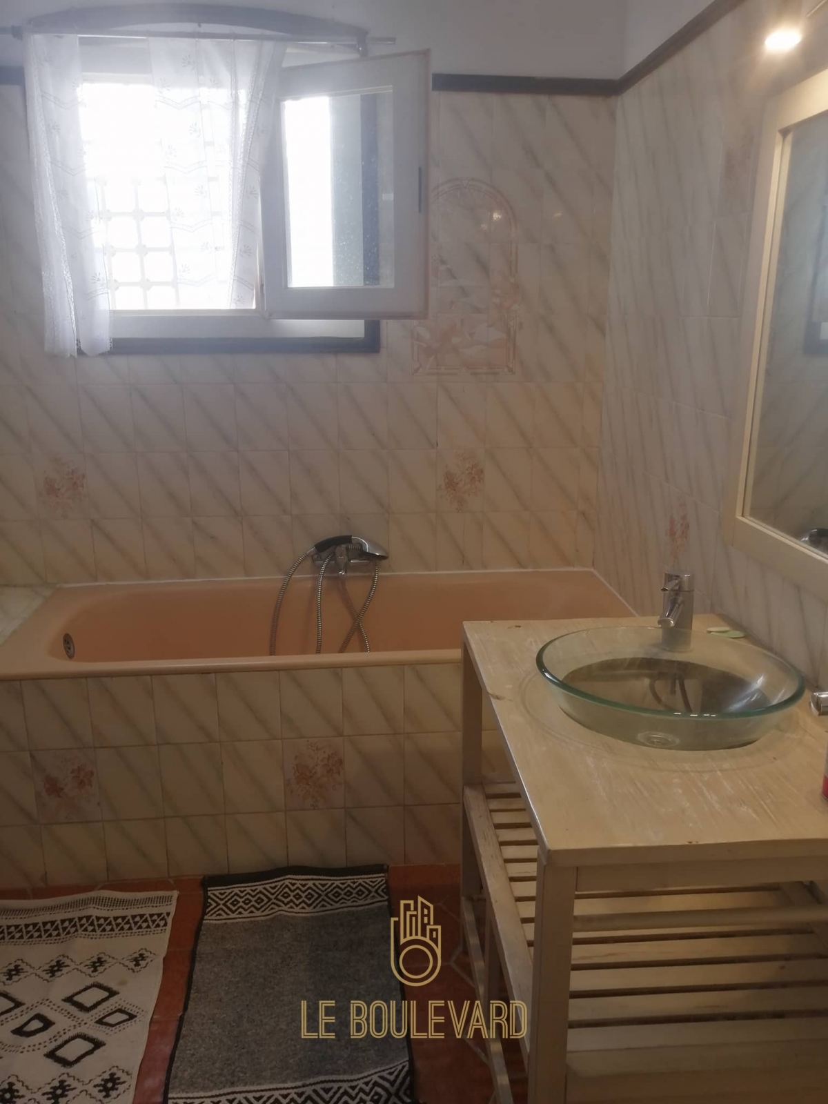 Au 1ér étage on trouve 2 chambres à coucher avec dressing, séjour, salle de bain, une cuisine bien équipée et une terrasse.