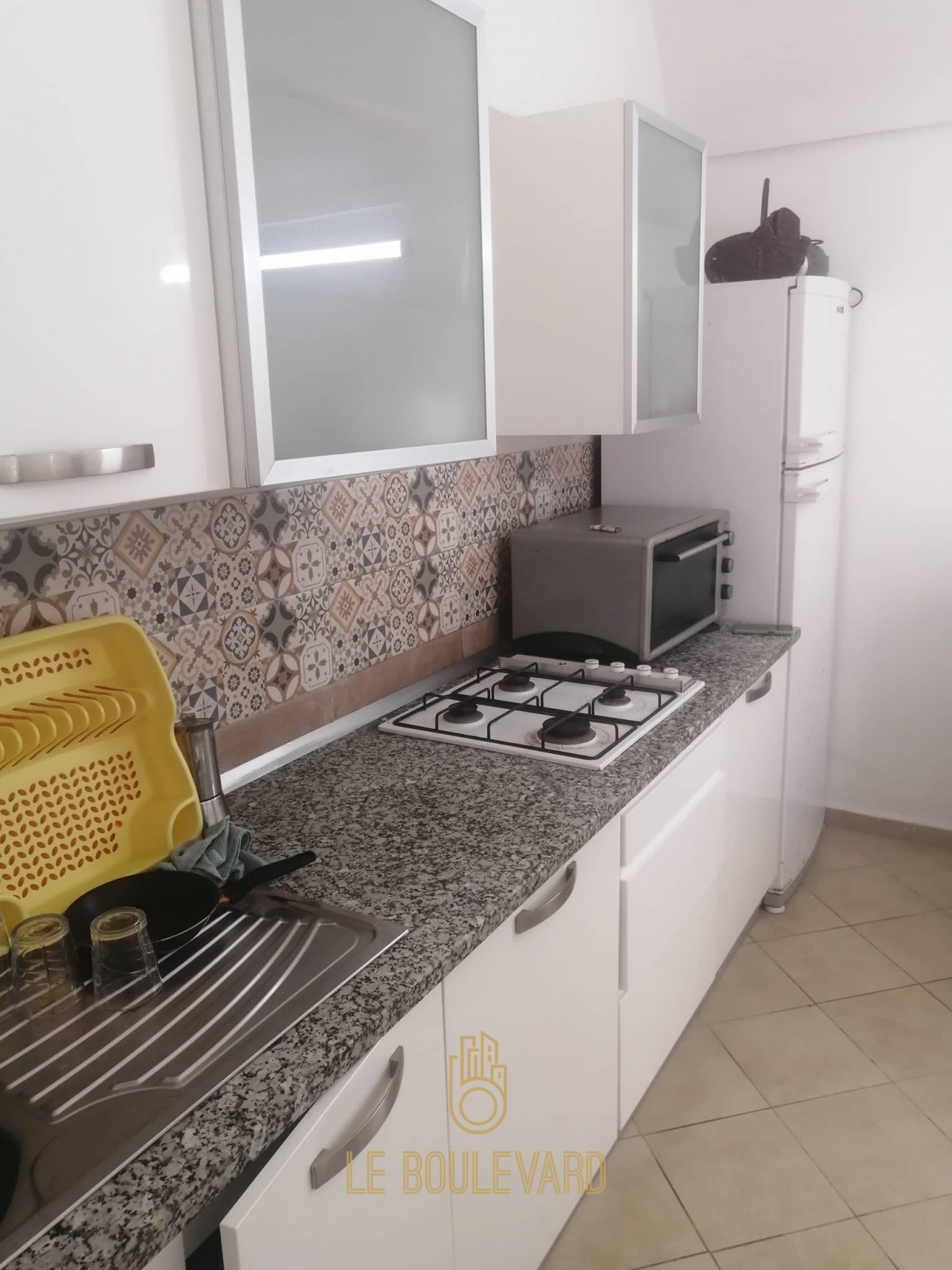 Il se compose d'un salon, une cuisine bien équipée (machine à laver, micro-onde, réfrigérateur…), une chambre à coucher, salle d’eau et une terrasse.