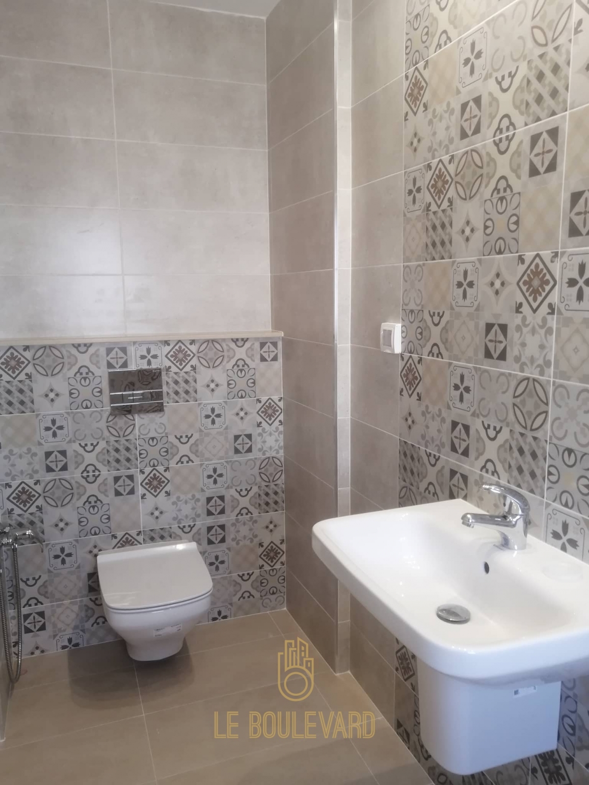 Il se compose d’un salon ayant une grande terrasse, une chambre à coucher avec dressing, une cuisine indépendante bien équipée (plaque, hotte) et salle d’eau
