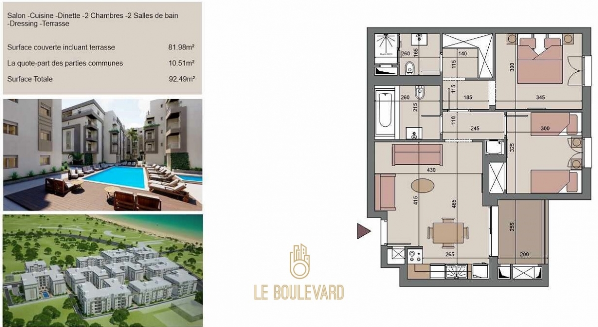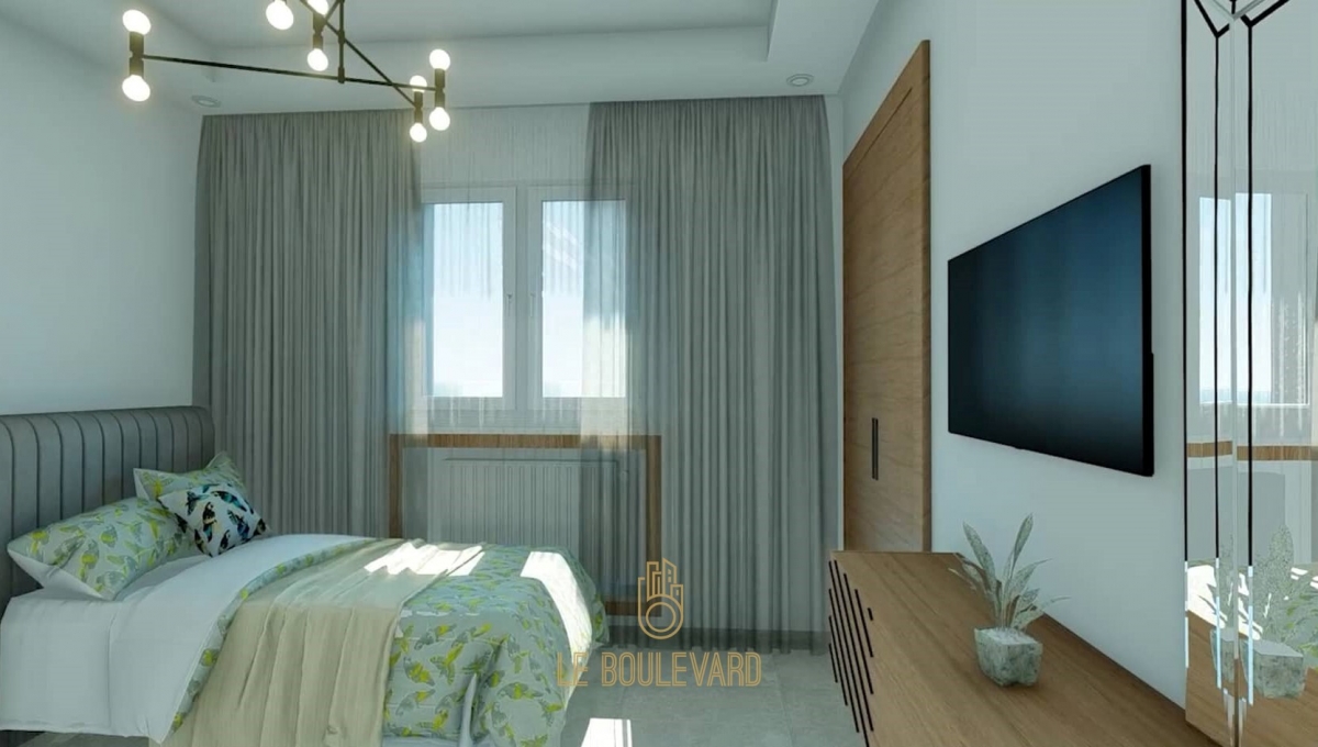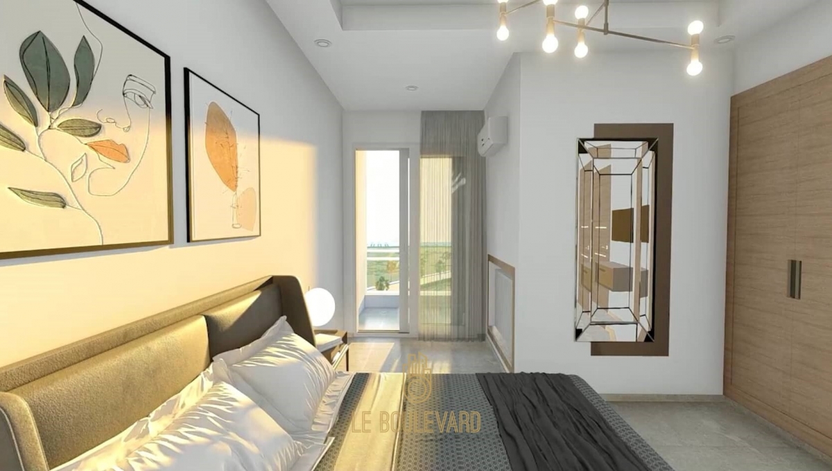 Il se compose d'un salon avec une terrasse vue mer, une cuisine moderne bien équipée (Plaque, hotte, four…), une salle de bain, une chambre à coucher avec dressing et une suite parentale avec dressing et salle d’eau.