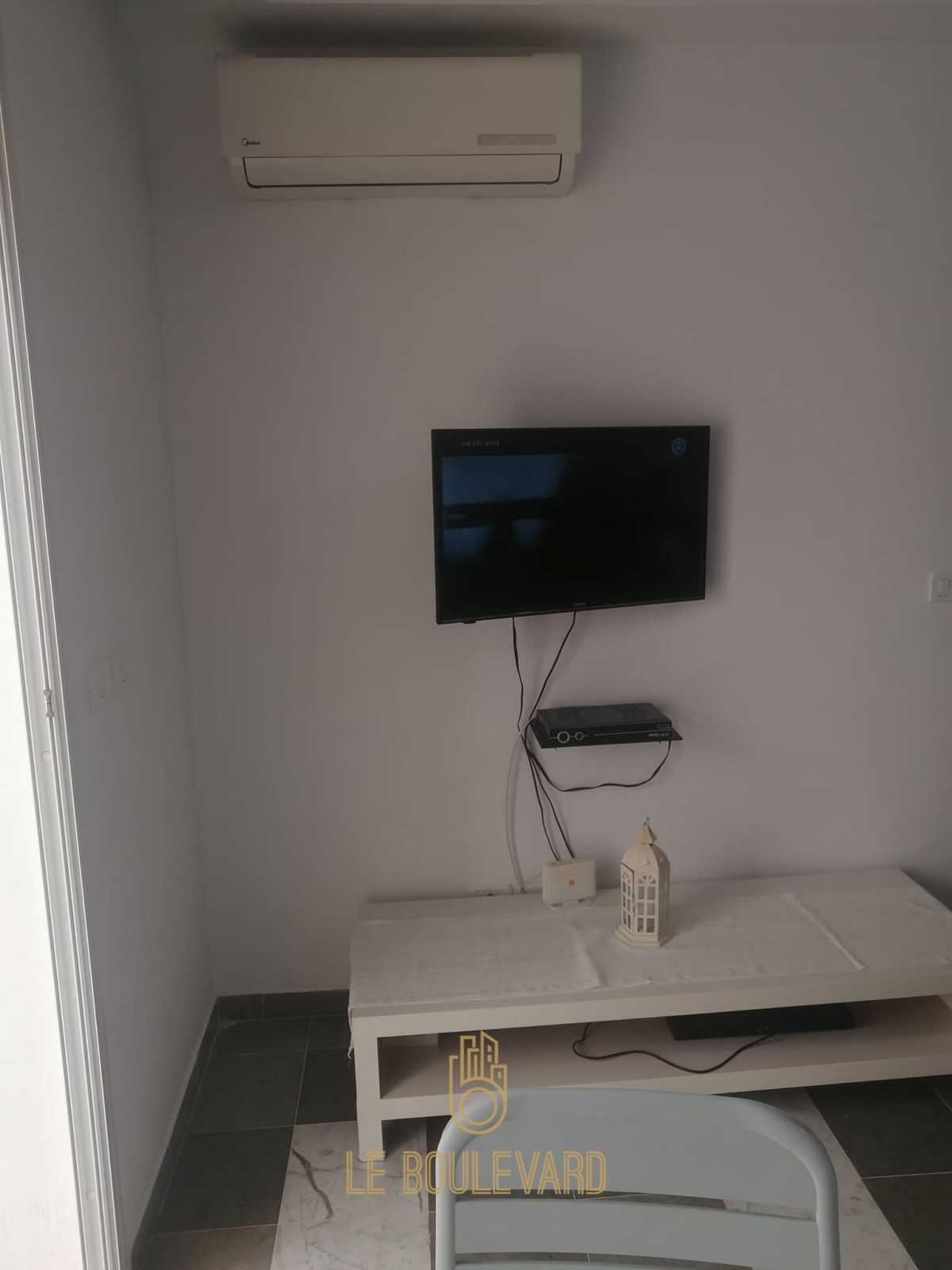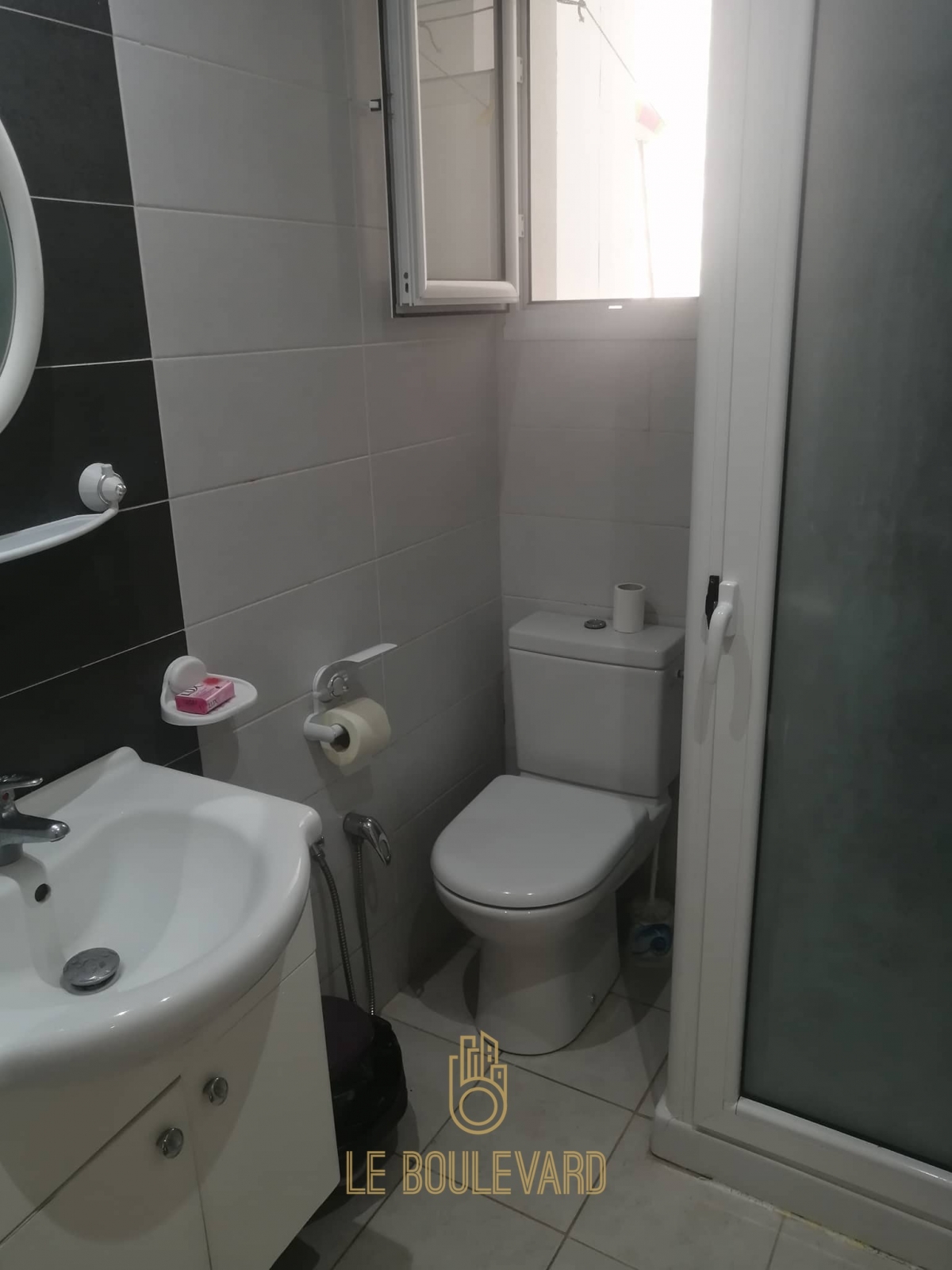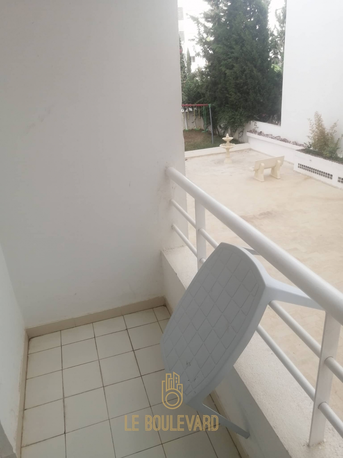 L'entrée donne sur un salon avec balcon, une cuisine bien équipée (hotte, plaques, four, frigidaire, et machine à laver…) avec séchoir, une chambre à coucher avec dressing et salle d’eau