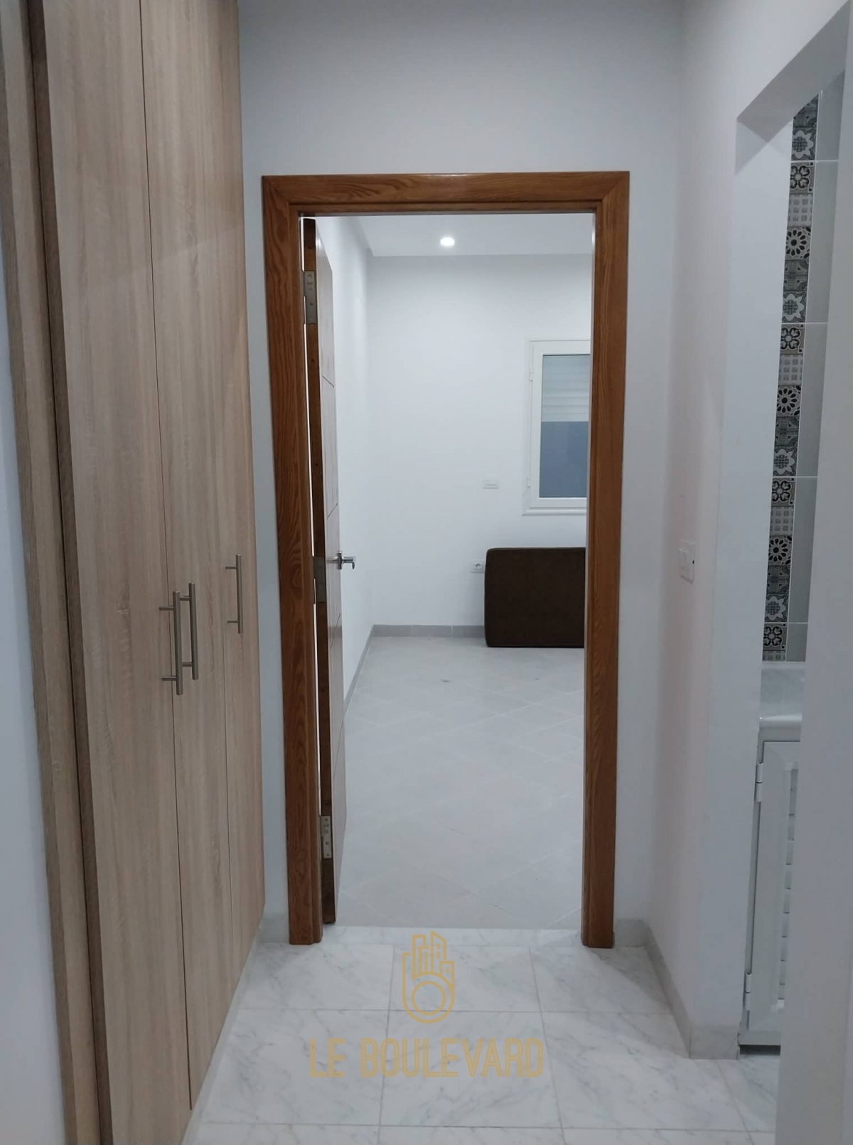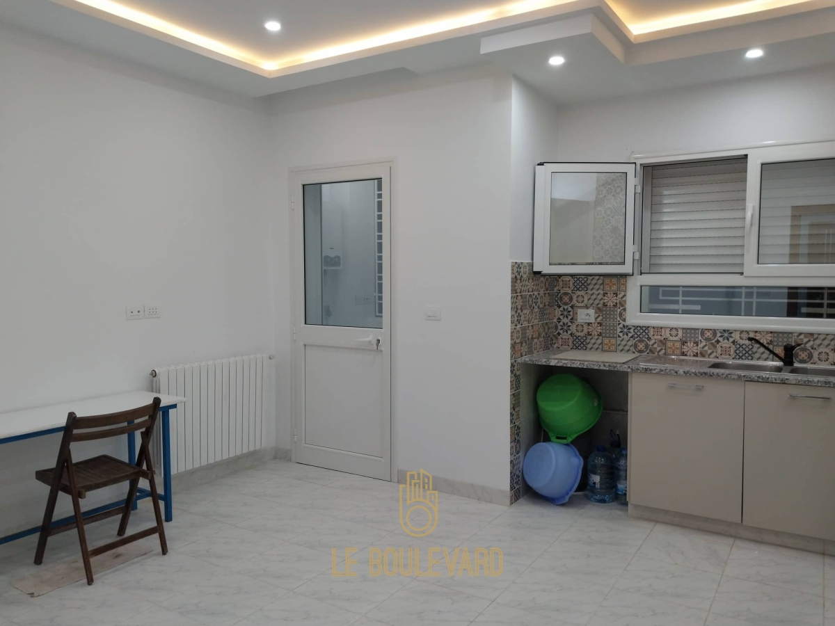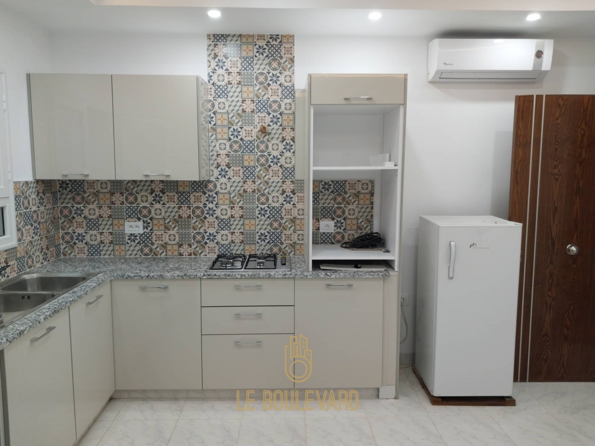 Il se compose d'un salon avec un petit balcon, salle d'eau, une cuisine bien équipée et une chambre à coucher avec dressing