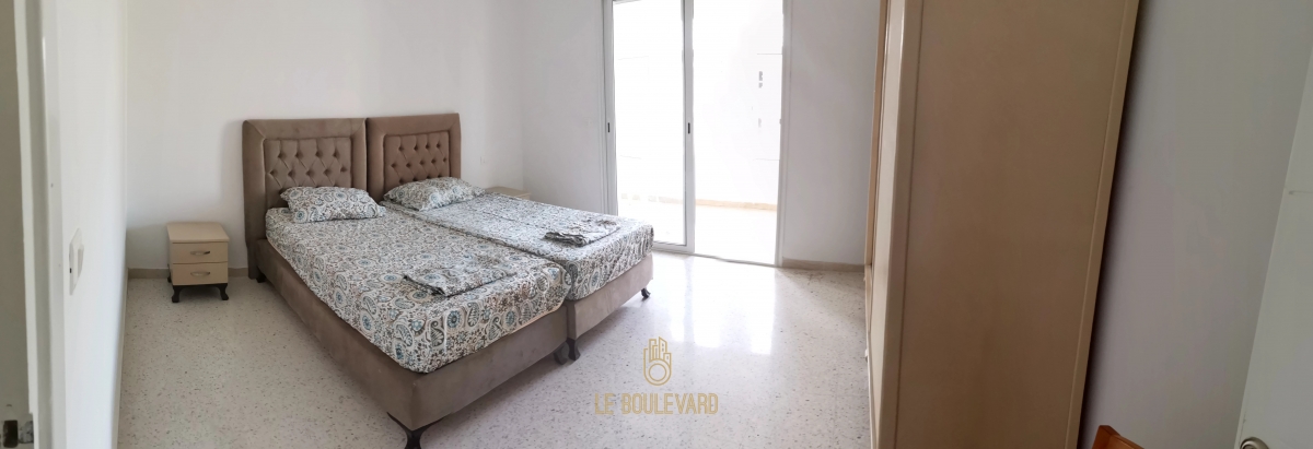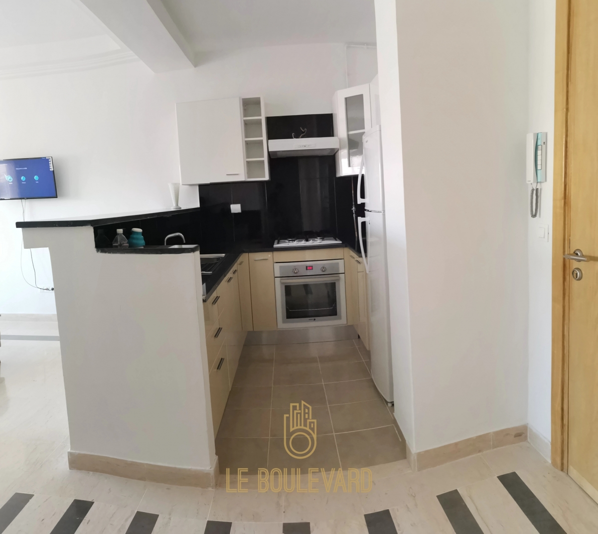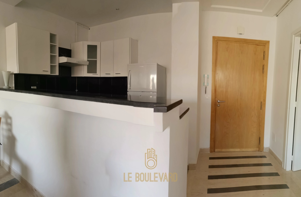 Il se compose d'un spacieux salon avec balcon, une chambre à coucher avec balcon, une cuisine bien équipée (plaque, hotte et four…) et salle d'eau avec cabine de douche