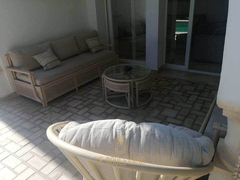 L'entrée donne sur un spacieux et lumineux salon donne sur un jardin avec piscine, une cuisine bien équipée (plaque, hotte, four, machine à laver et machine à lave-vaisselle...) avec accès au jardin, une chambre d'arrangement et salle d'eau.