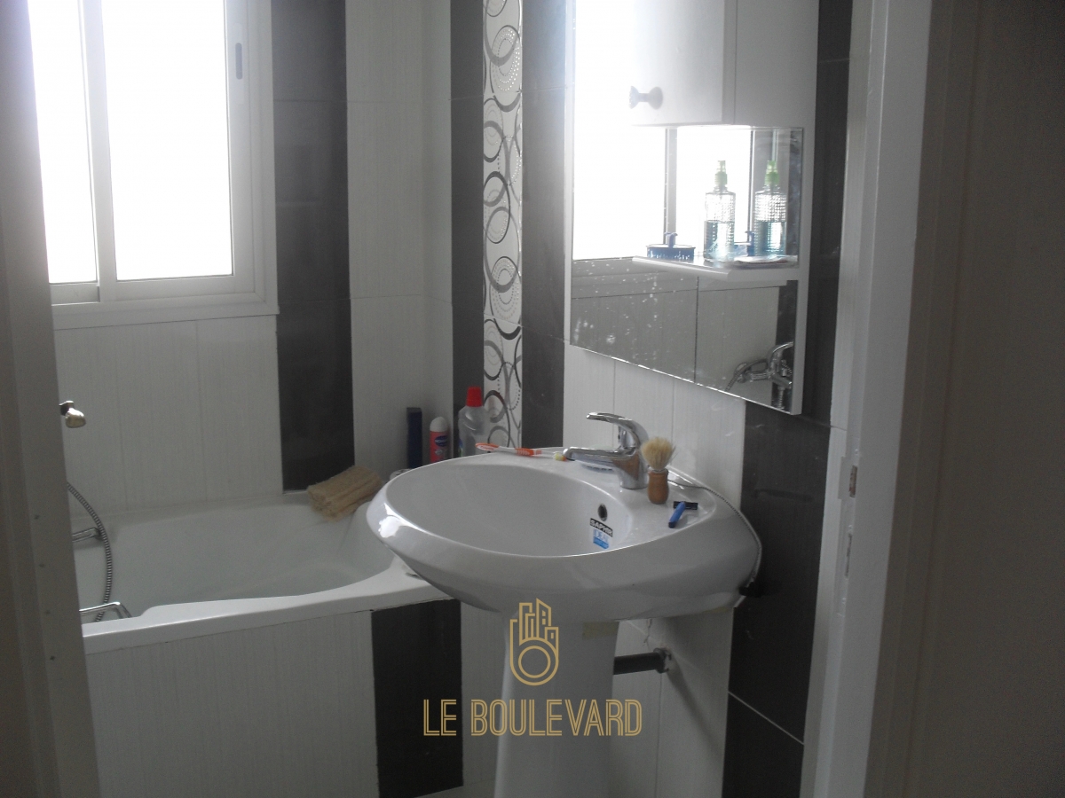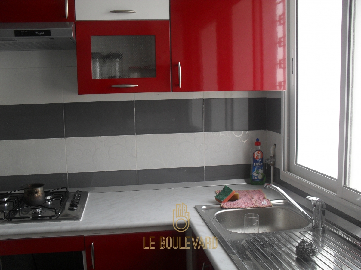 Il se compose d'un salon avec balcon, salle de bain, une cuisine bien équipée ayant un séchoir et 2 chambres à coucher